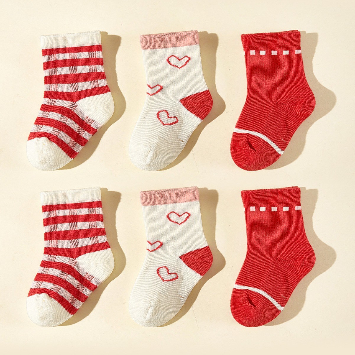 6 쌍의 아기 아기 귀여운 자수 미드 튜브 양말 발렌타인 데이 사랑 사계절 짧은 양말 뼈없는 봉합 노동자스토어 가기