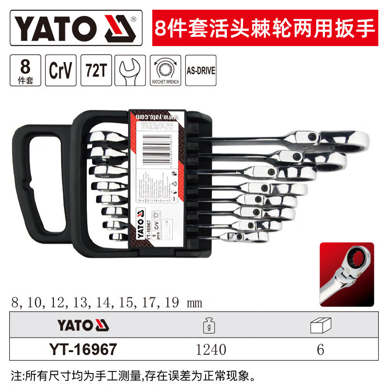 Elto YATO 유연한 헤드 래칫 이중 목적 렌치 세트 세트 6 피스 YT-16965스토어 가기