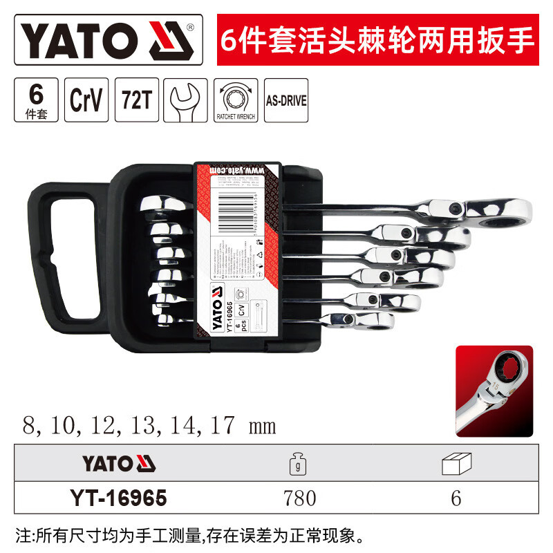 Elto YATO 유연한 헤드 래칫 이중 목적 렌치 세트 세트 6 피스 YT-16965