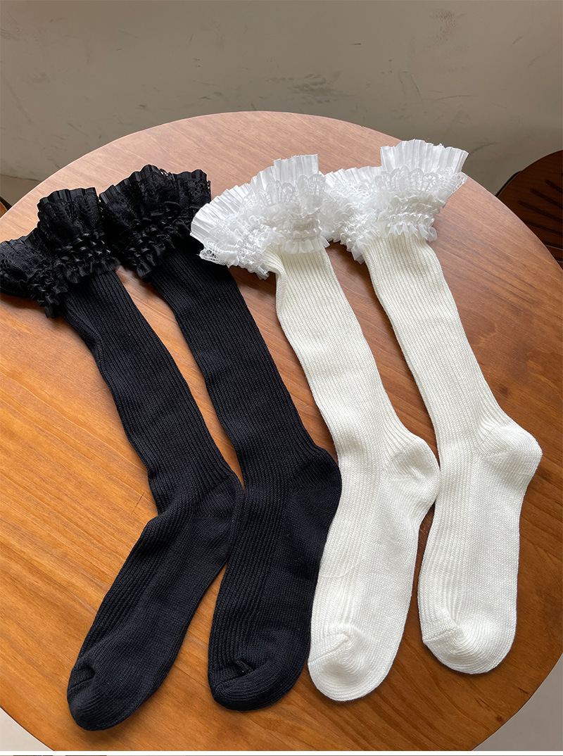 달콤한 소녀 스트레치 주름진 레이스 스타킹 거친 면화와 리넨 송아지 통기성 양말 봄과 여름
