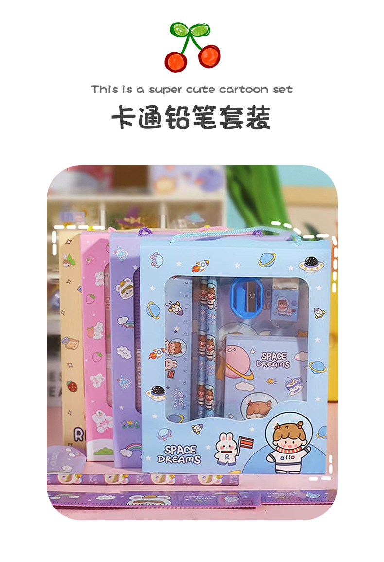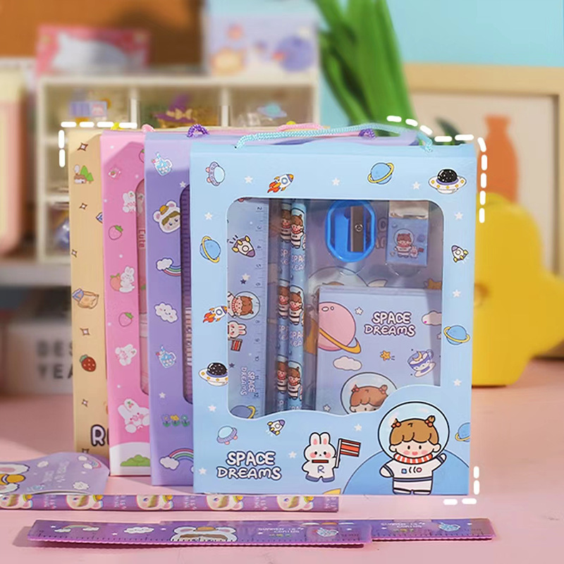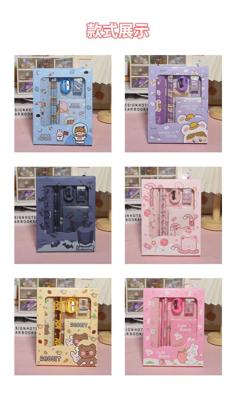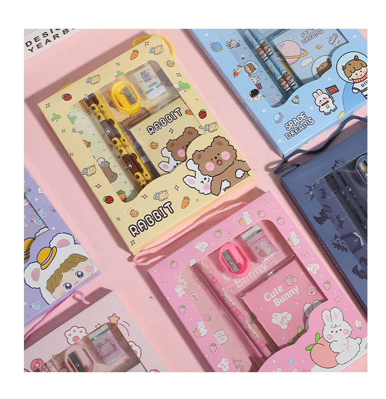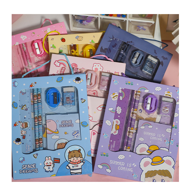 초등학생을위한 만화 휴대용 6 조각 문구 선물 상자 세트 어린이 날 학습 선물 상품 유치원