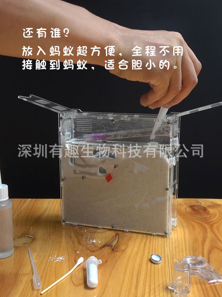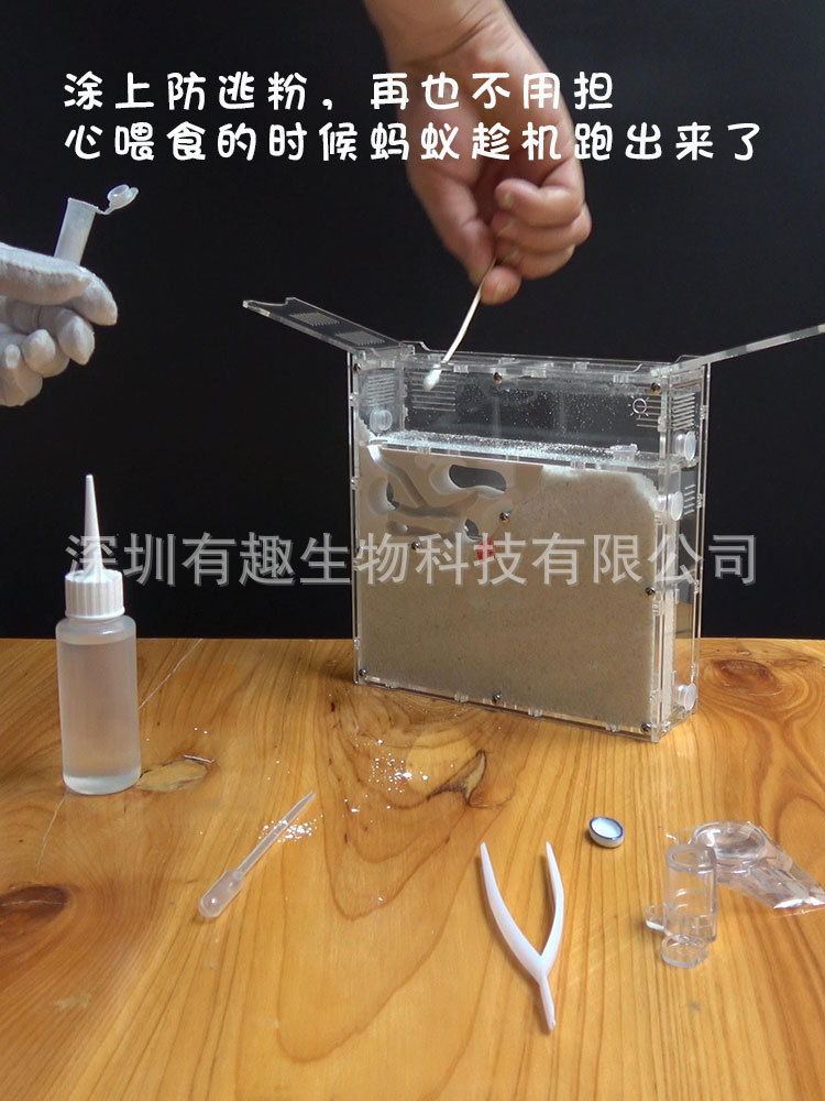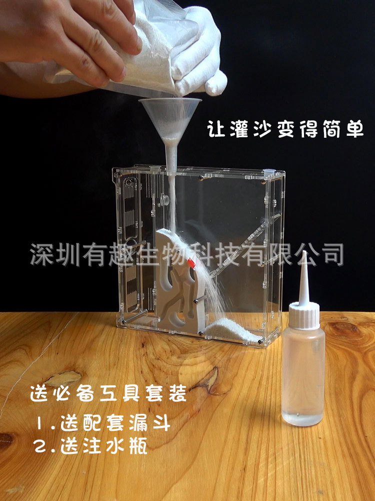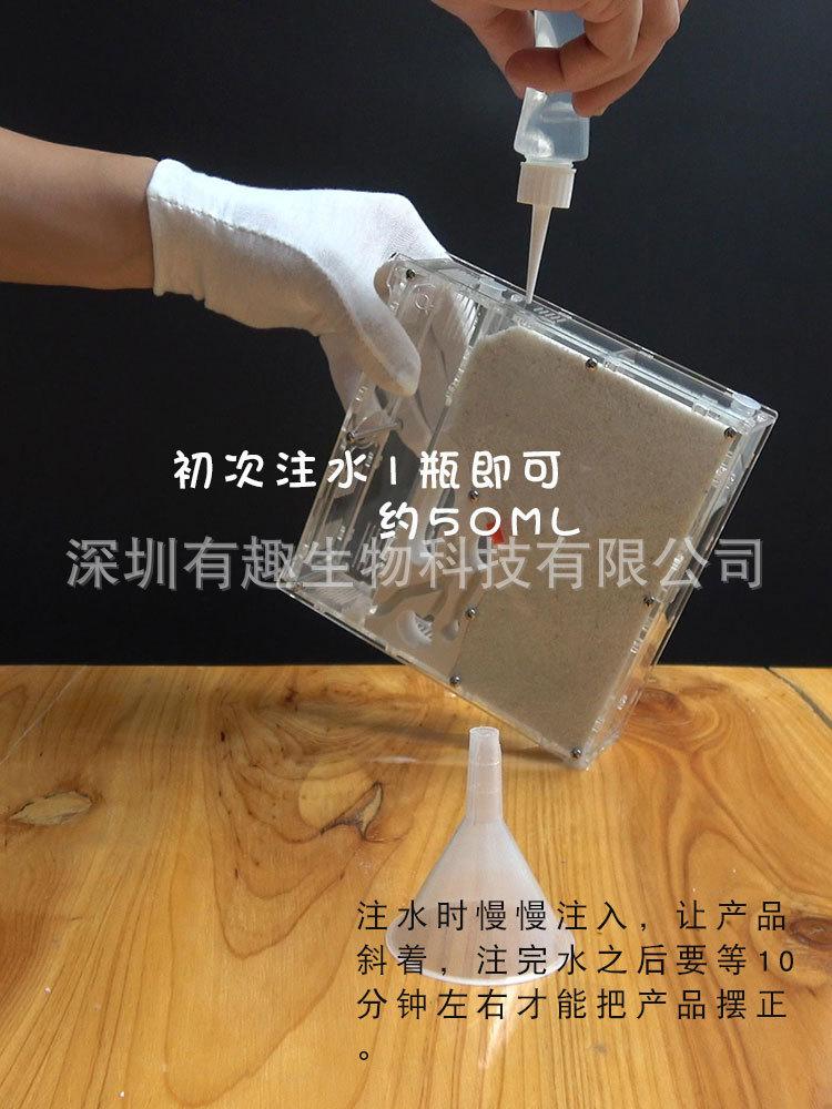 【清单】:蚁巢主体,加水瓶,镊子,放大镜,滴管,漏斗,说明书,沙土。