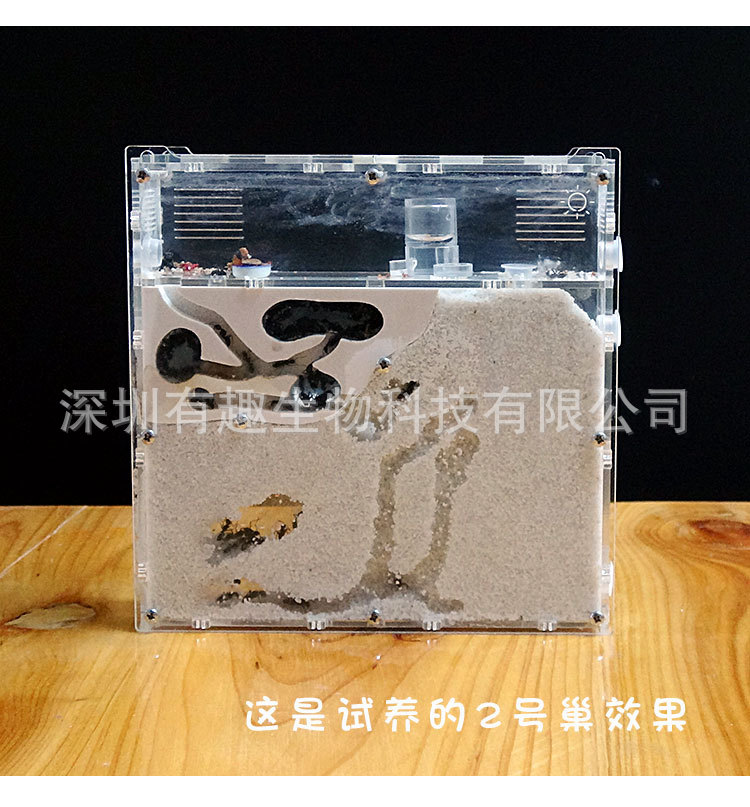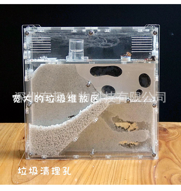 小蚂蚁在蚂蚁城堡特制的泥沙中,就像其生活在土壤里一样,劳作、活动、休息。最为神奇的是,你可以清晰地观察到蚂蚁挖掘的巢