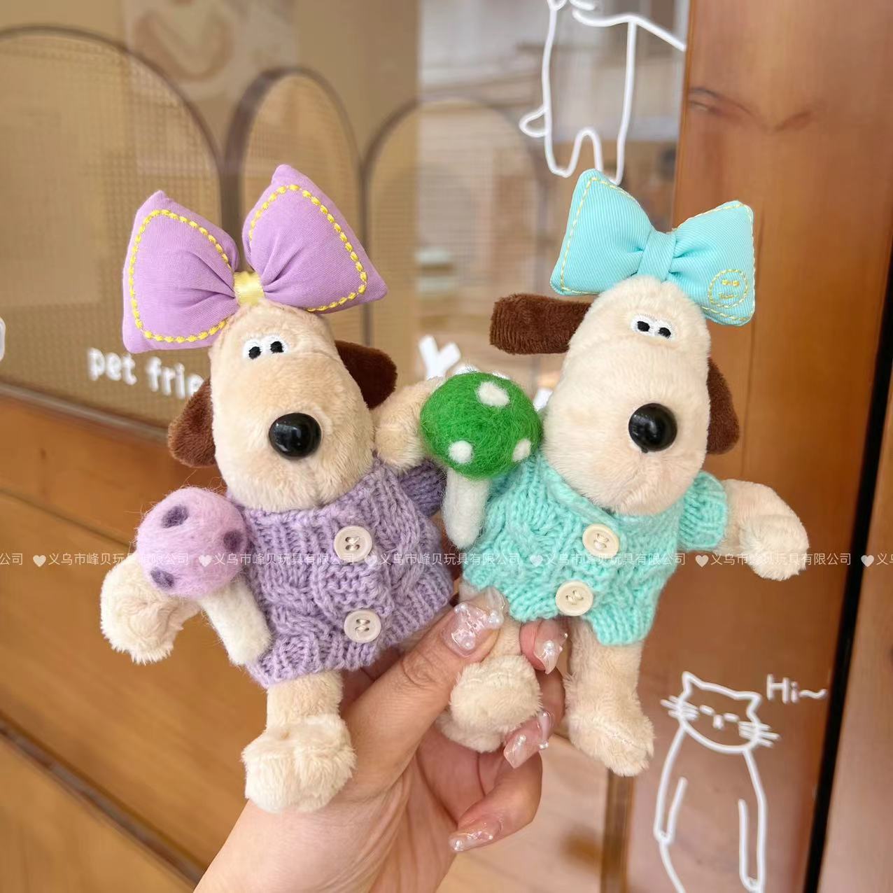 핸드독 버튼 스웨터 버섯 펜던트 백 펜던트 스웨터 인형 키 체인 플러시 울 선물스토어 가기