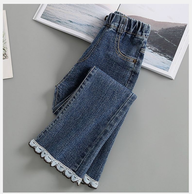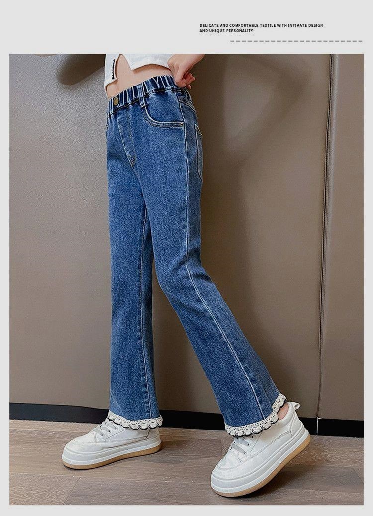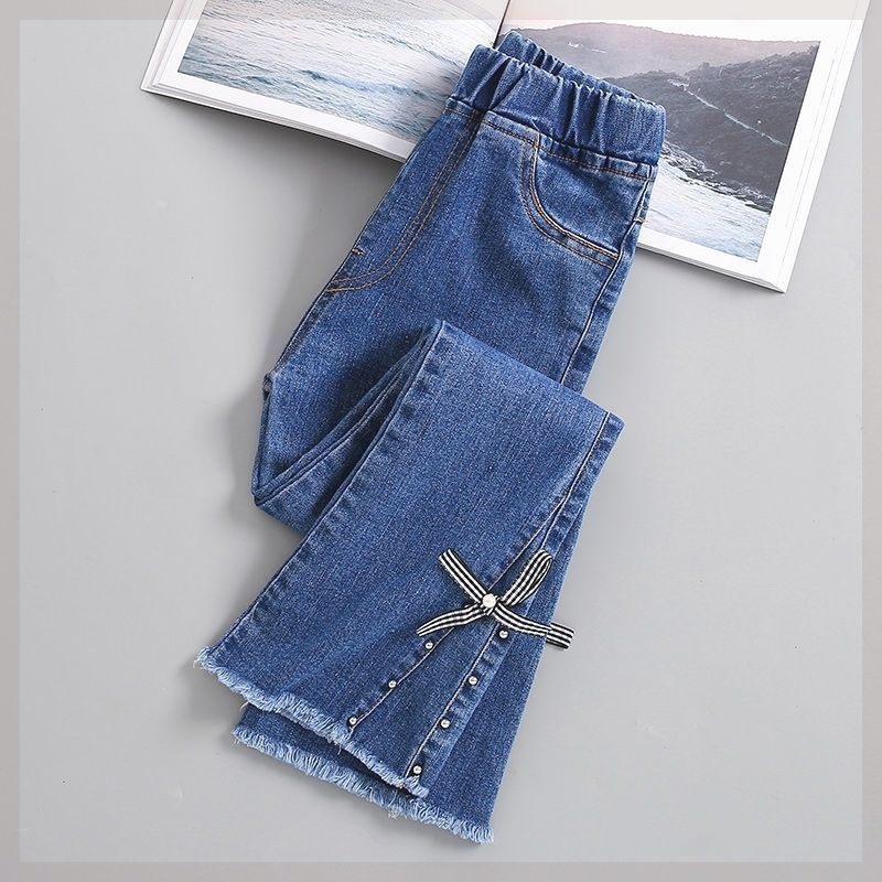 소녀 청바지 2024 새로운 봄과 가을 어린이 서양식 슬림 핏 바지 중대형 어린이 봄 마이크로 플래 바지스토어 가기