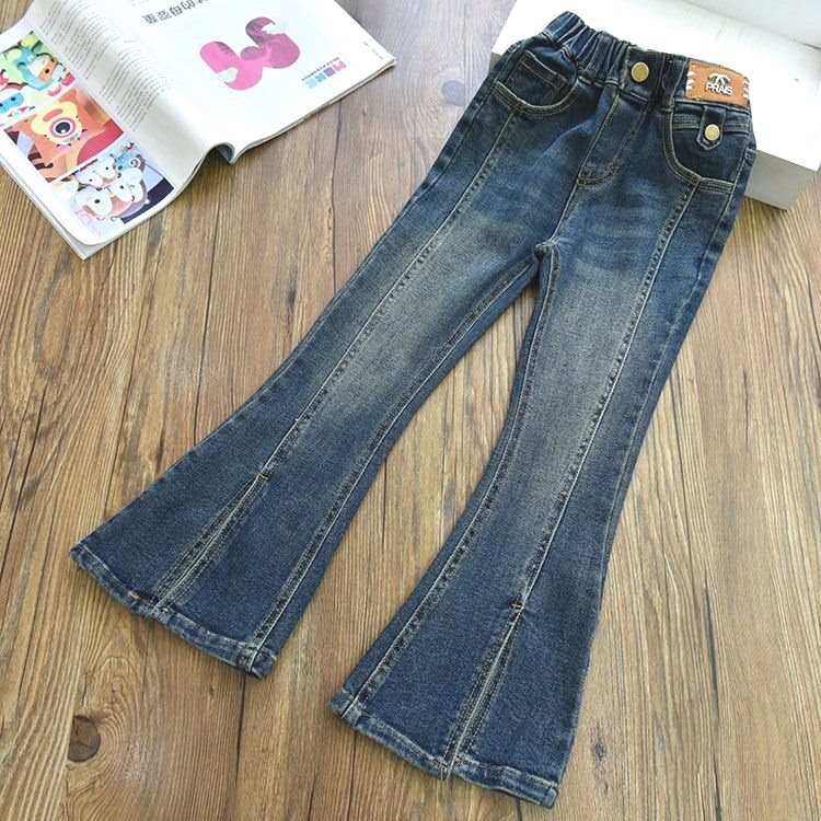 아동복 소녀 봄과 가을 서양식 청바지 2024 새로운 스타일 중대형 어린이 플레어 바지 소녀 슬림-핏 아우터 세련된 바지스토어 가기