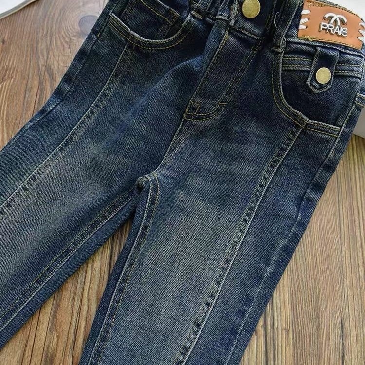 아동복 소녀 봄과 가을 서양식 청바지 2024 새로운 스타일 중대형 어린이 플레어 바지 소녀 슬림-핏 아우터 세련된 바지