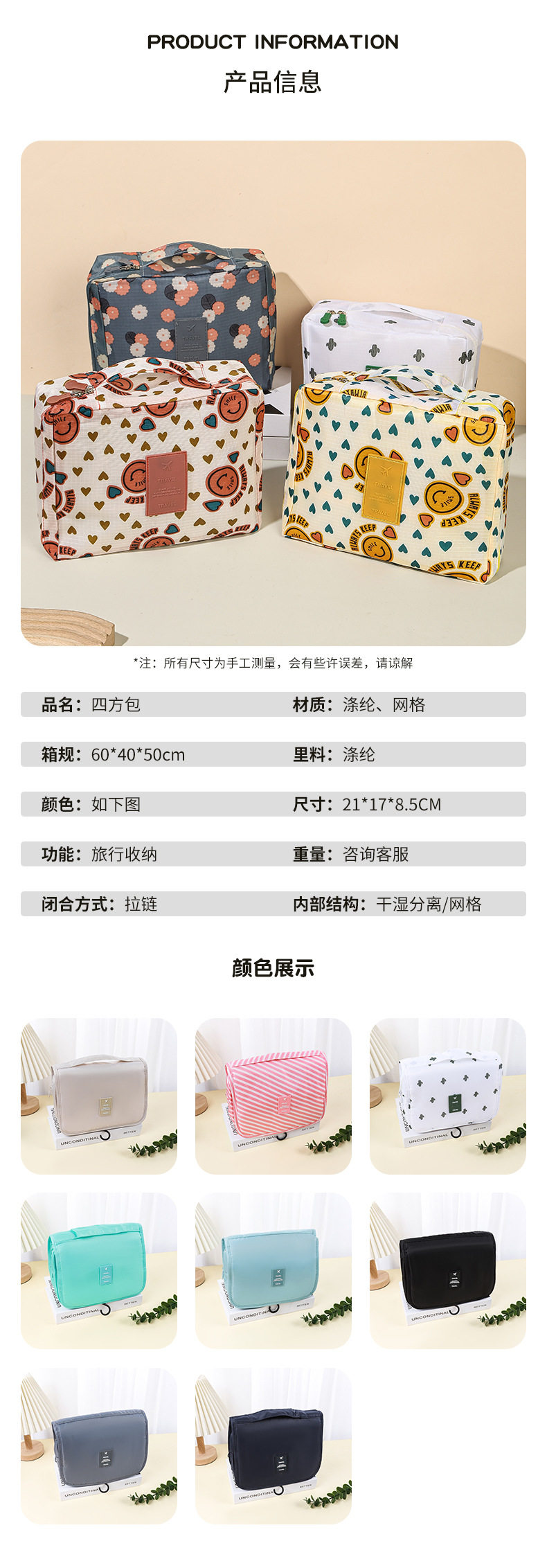 공장 직접 방수 두꺼운 여행 후크 세척 가방 다기능 레저 화장품 가방 세척 가방 대용량