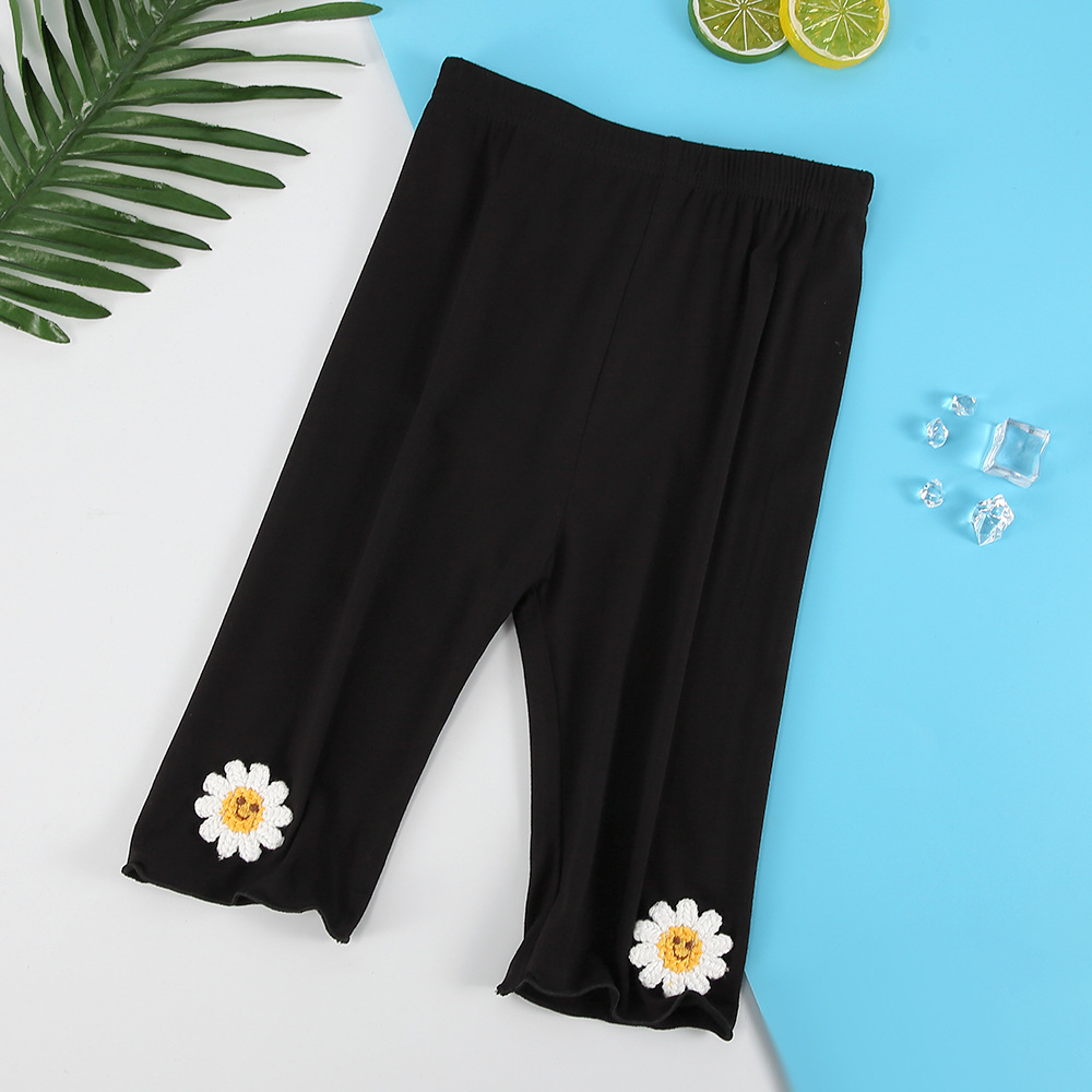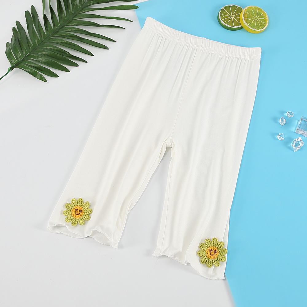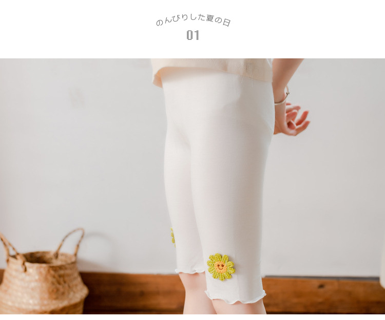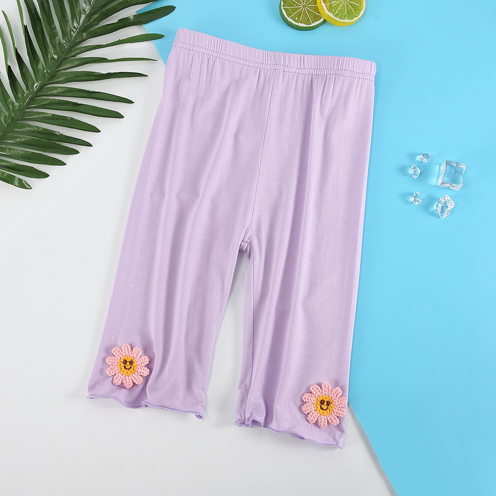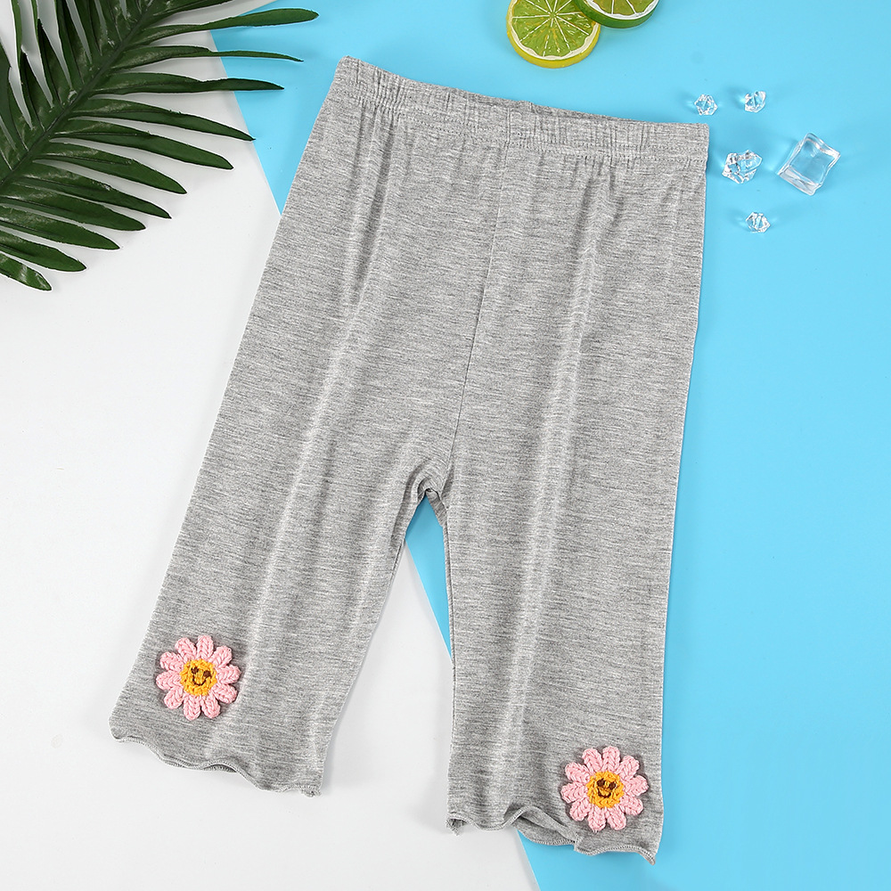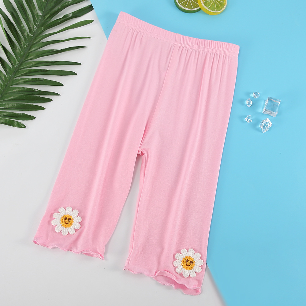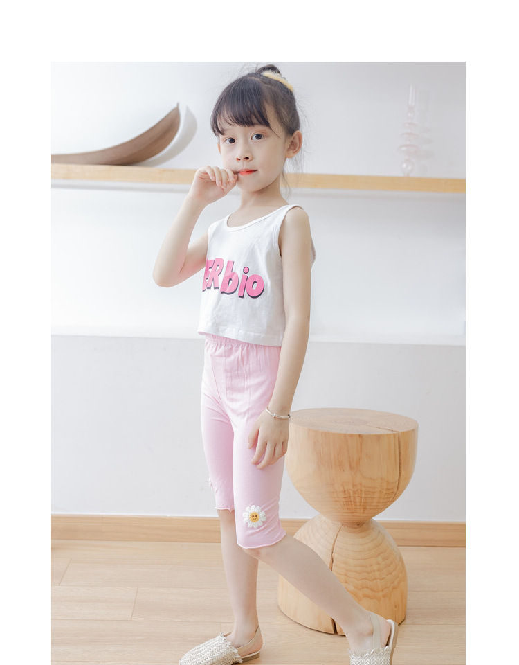 여아 레깅스 여름용 얇은 아동용 외출복 5부 바지 아기 모달 중간 길이 바지 하이웨이스트 디자인 중소형 아동용