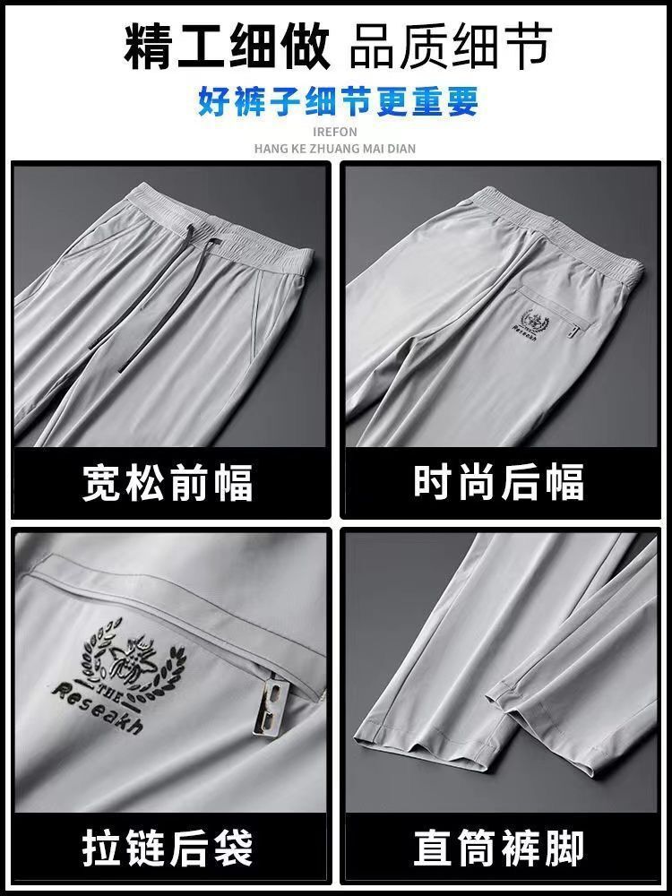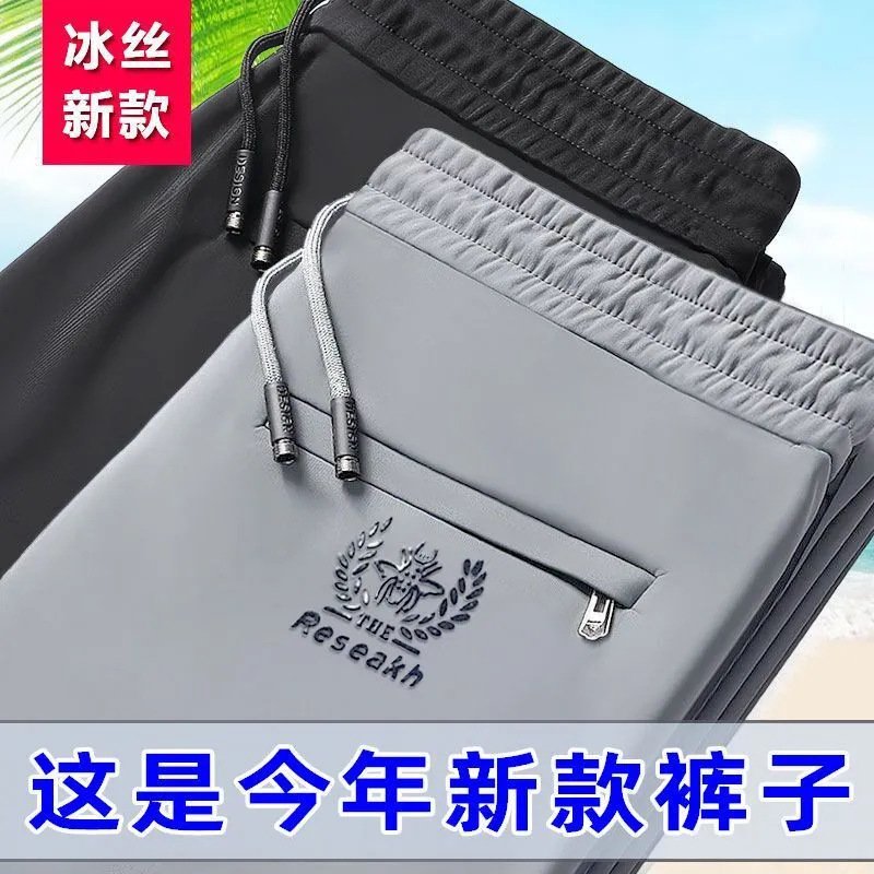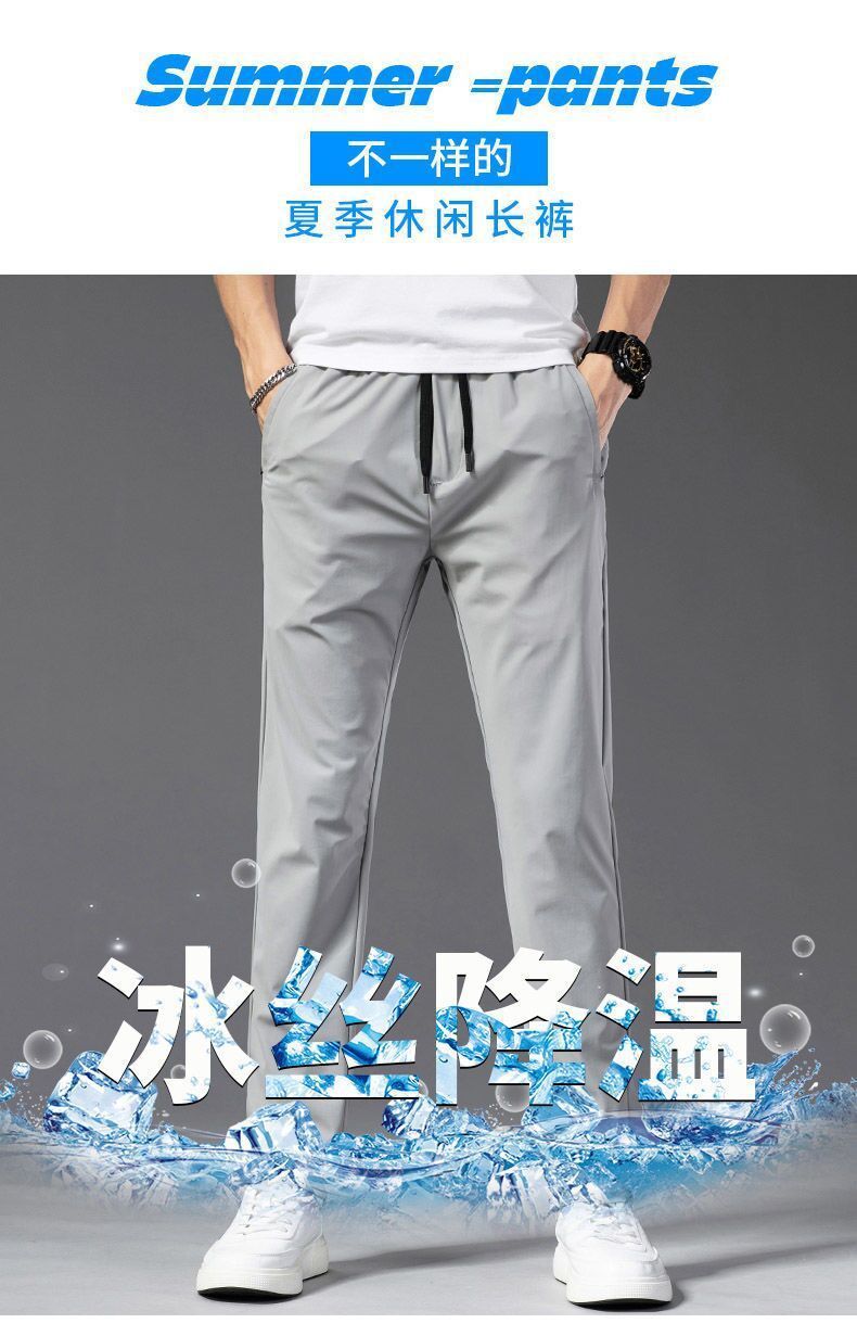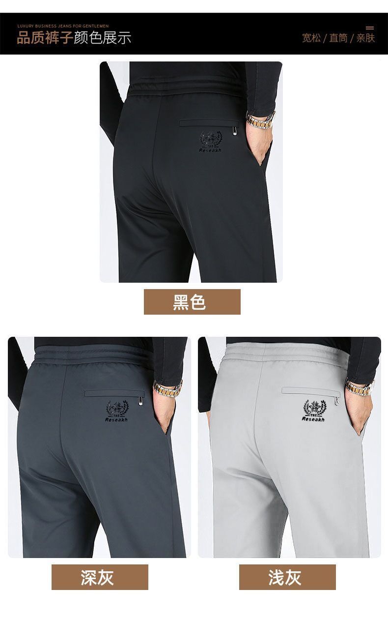 고급 아이스 실크 바지 남성용 탄성 캐주얼 바지 남성용 젊고 중년 탄성 허리 느슨한 스포츠 얇은 직선 바지