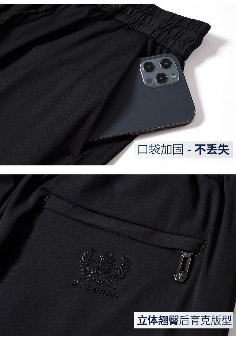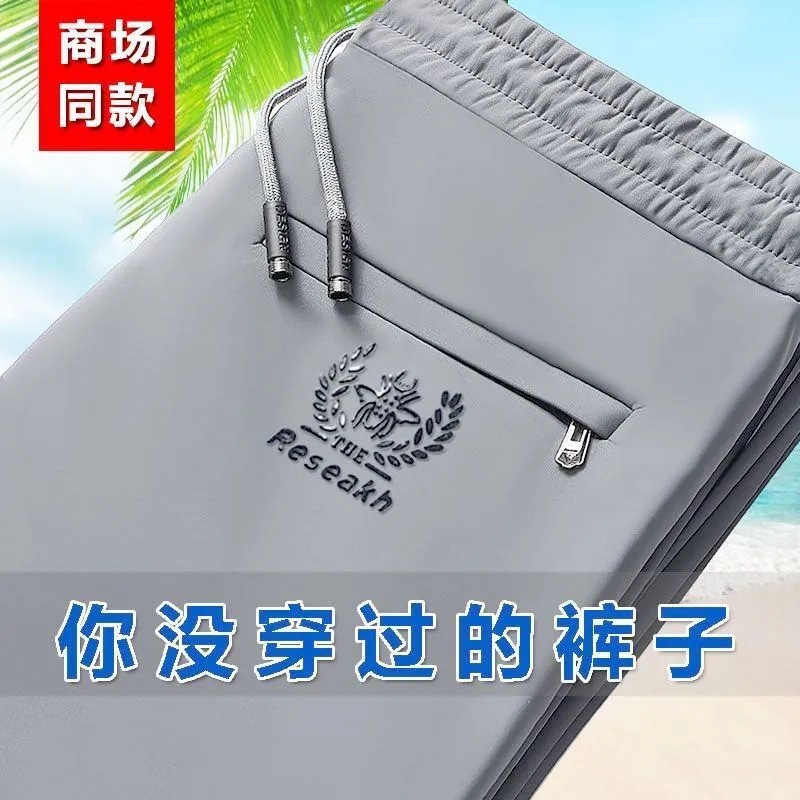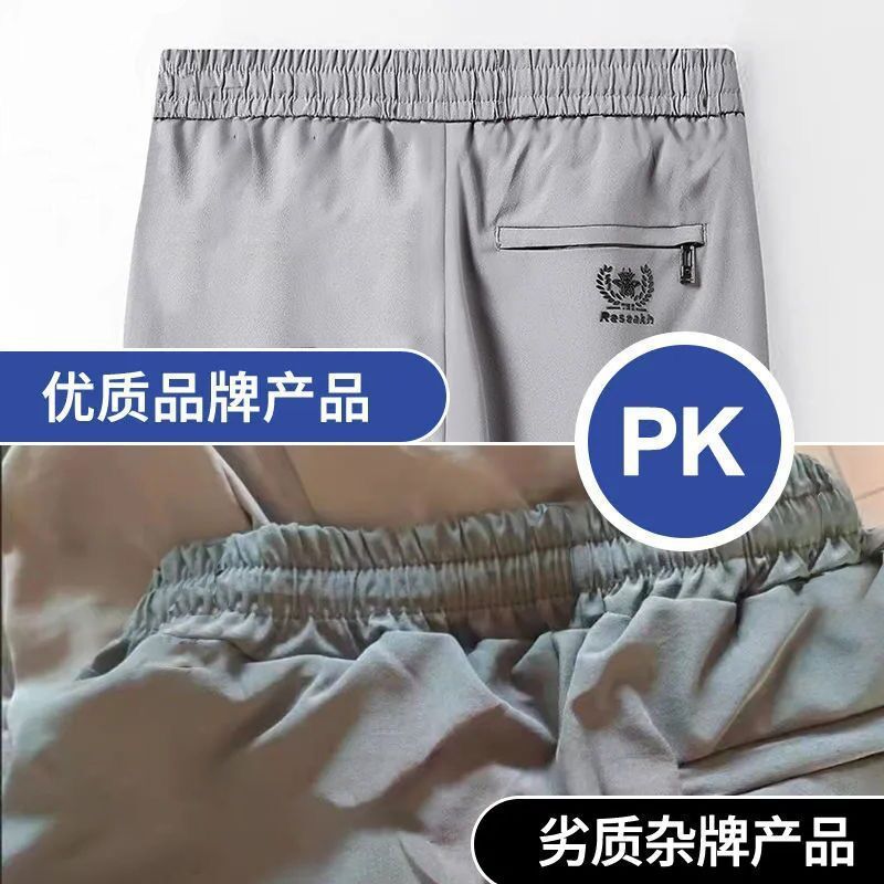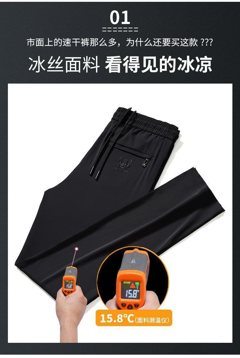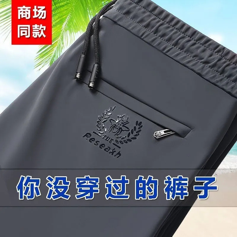 고급 아이스 실크 바지 남성용 탄성 캐주얼 바지 남성용 젊고 중년 탄성 허리 느슨한 스포츠 얇은 직선 바지