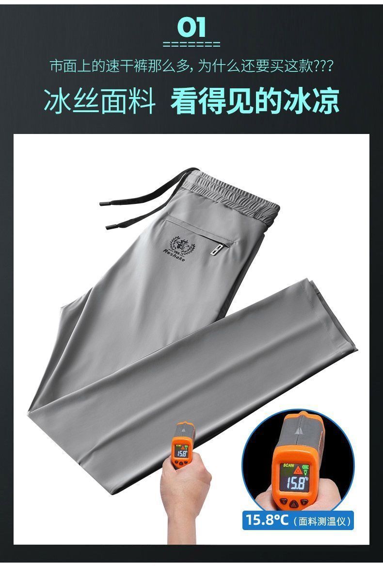 고급 아이스 실크 바지 남성용 탄성 캐주얼 바지 남성용 젊고 중년 탄성 허리 느슨한 스포츠 얇은 직선 바지스토어 가기