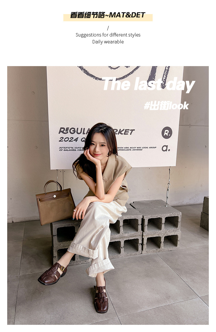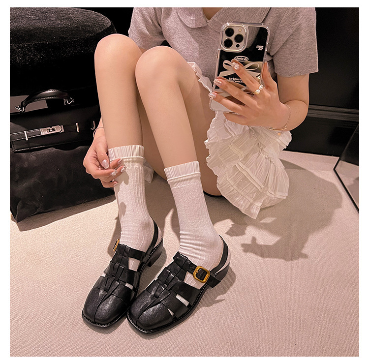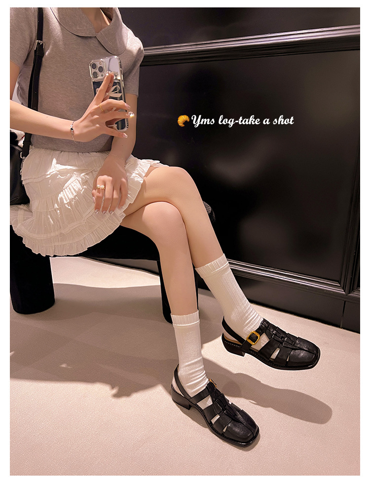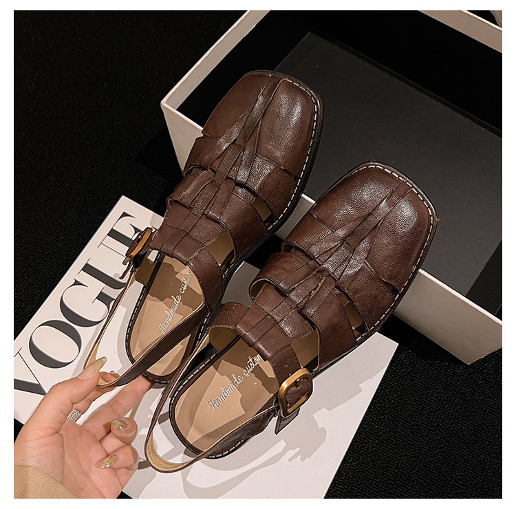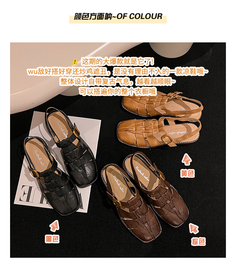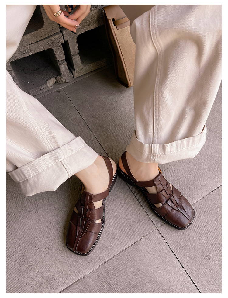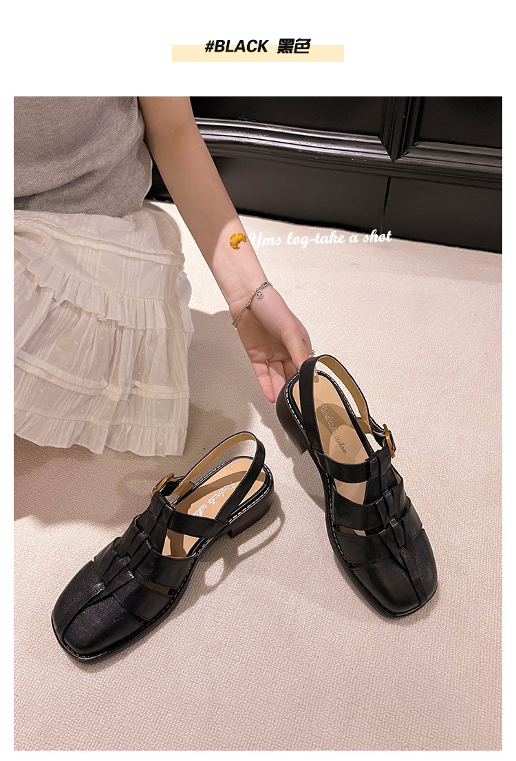 빈티지 할로우 발가락 샌들 여성용 여름 겉옷 양가죽 짠 돼지 케이지 슈즈 두꺼운 힐 미드 힐 두꺼운 소프트 솔 로마 신발스토어 가기