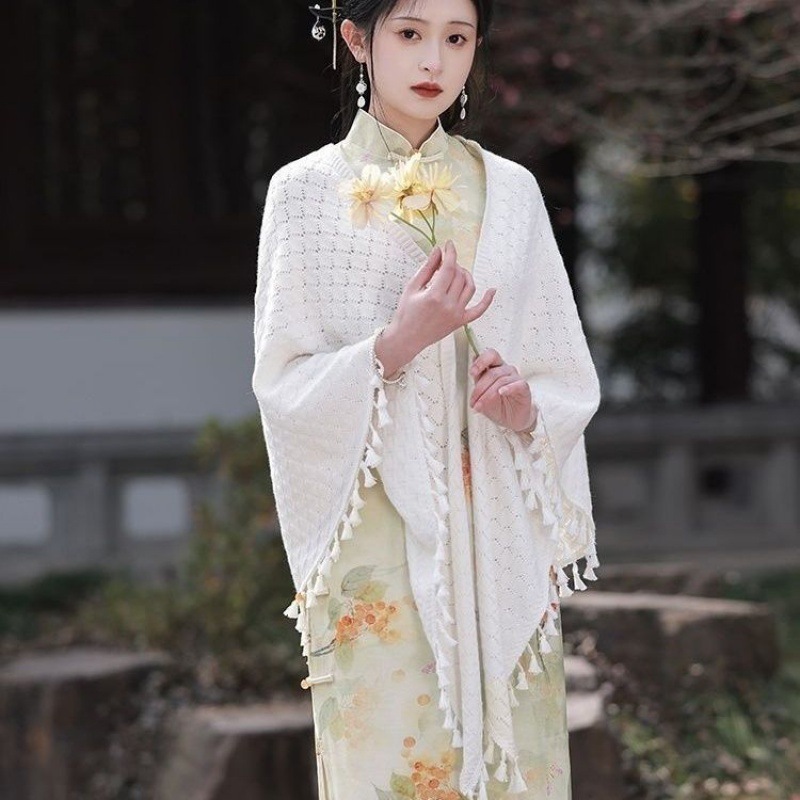 중공 청삼 목도리 외부 재킷 올매치 중국 스타일 민족 스타일 작은 목도리 여름 얇은 따뜻한 술 복고풍
