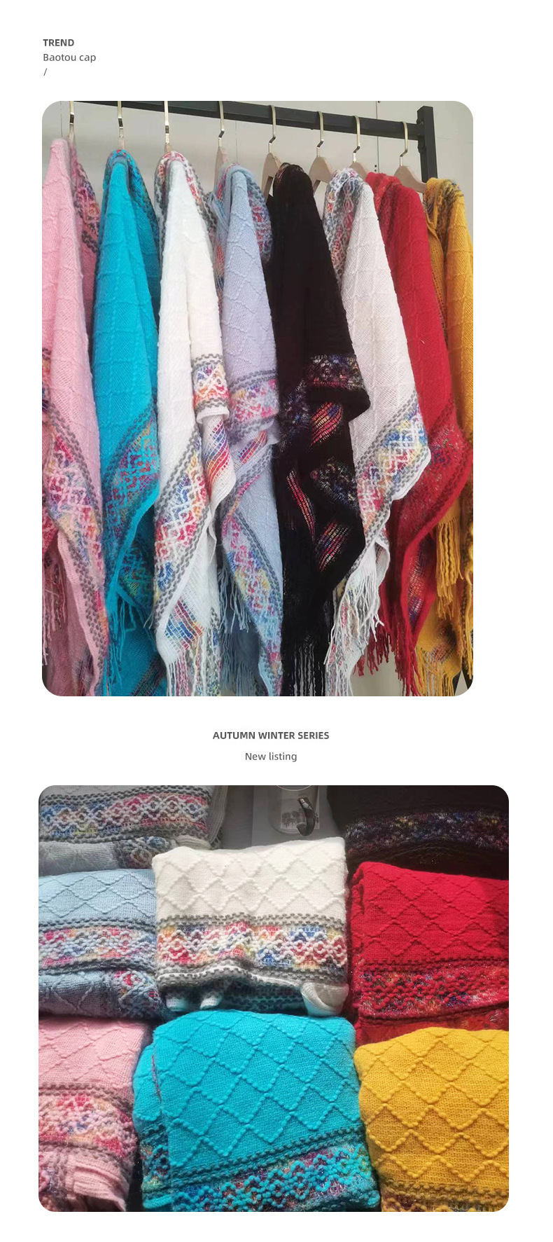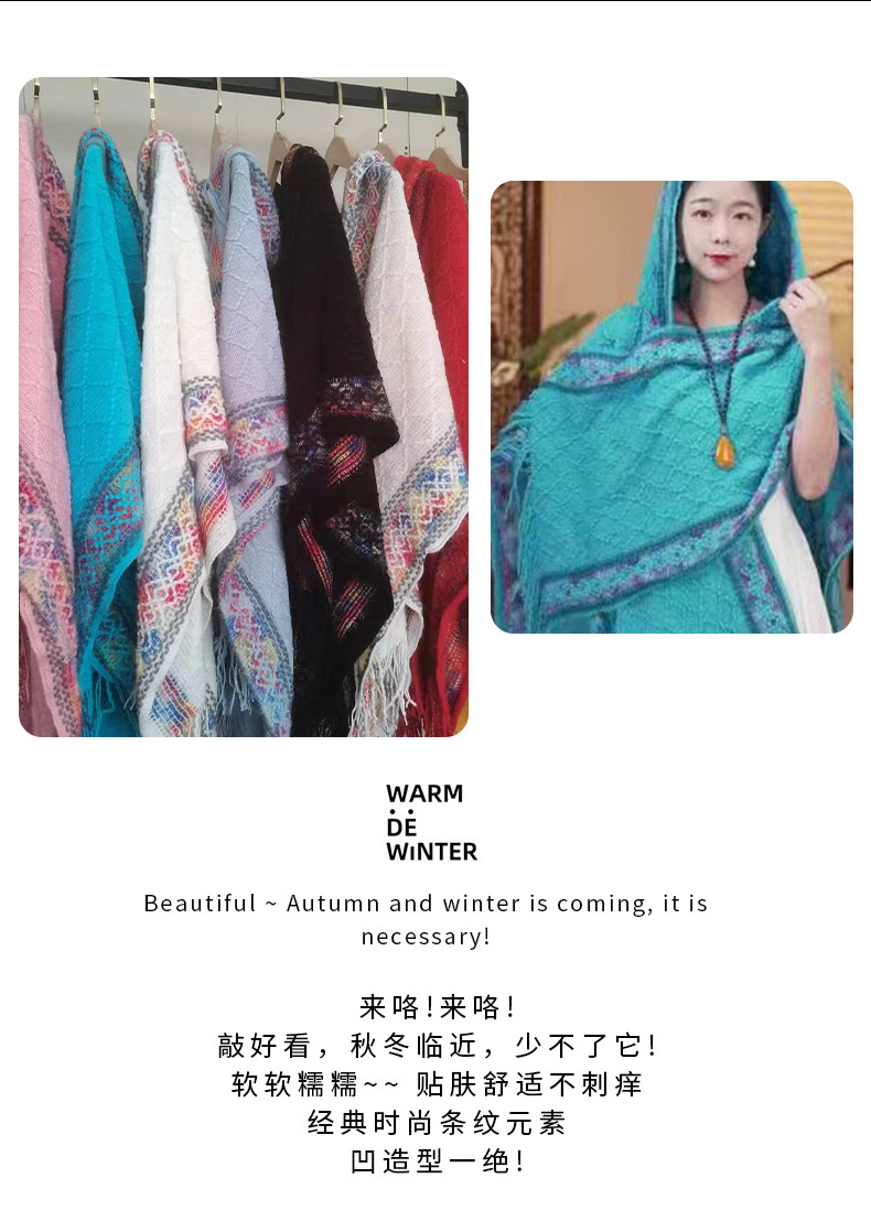 여행 사진 케이프 망토 따뜻한 후드 가을 새로운 민족 스타일 망토 컬러 웨이브 도트 외부 라이딩 니트웨어스토어 가기