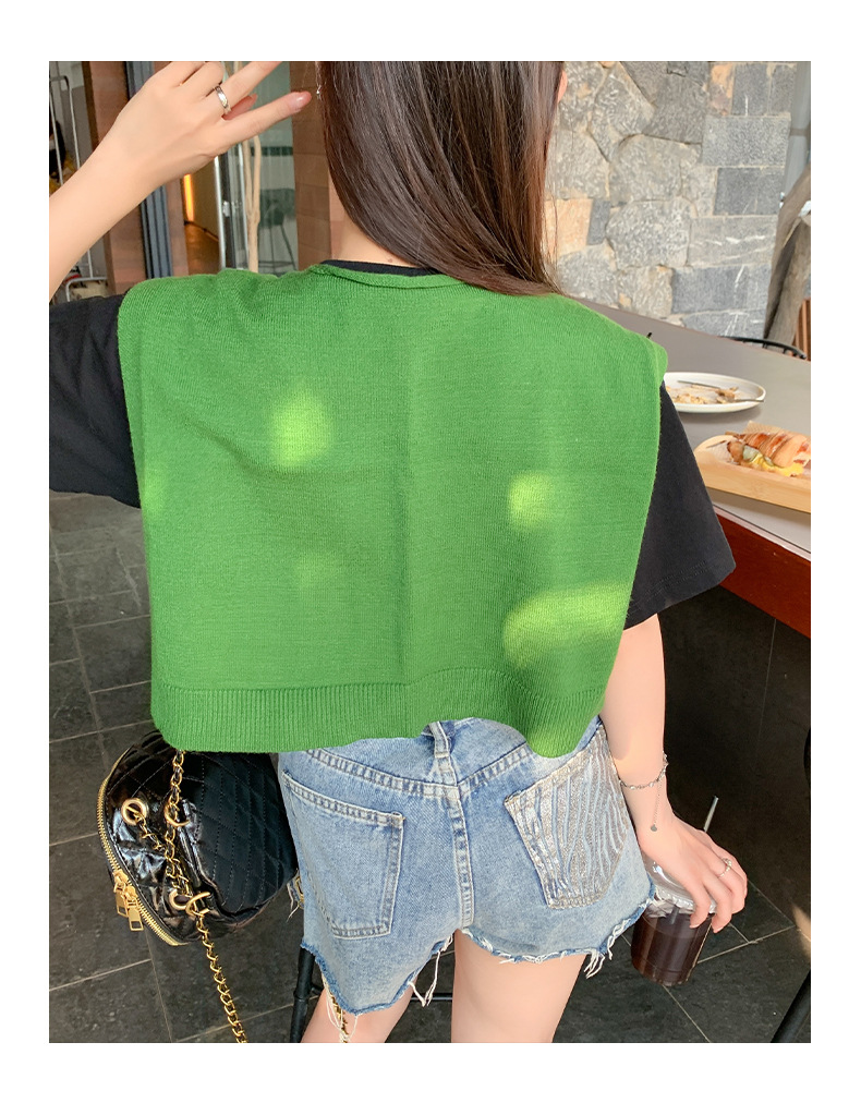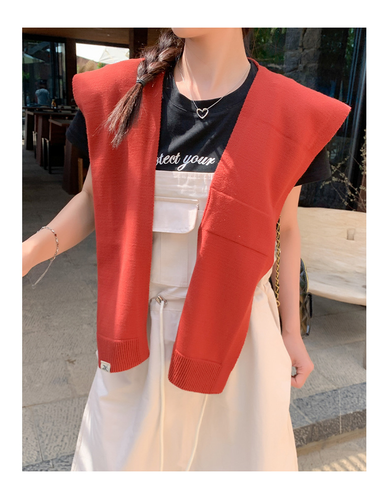 2024 여름 새로운 자외선 차단제 목도리 여성 외장 단색 니트 다용도 작은 사각형 에어컨 룸 목 보호 작은 양복 조끼