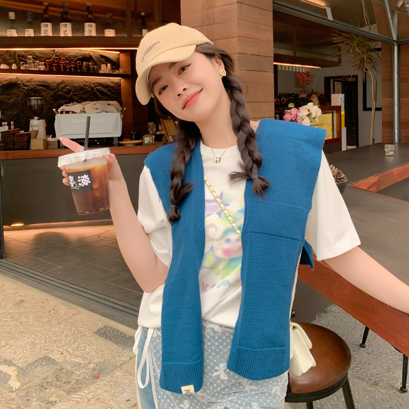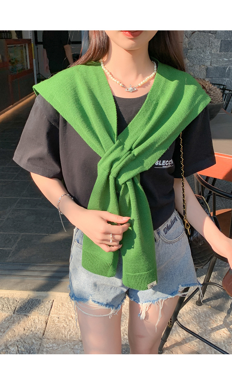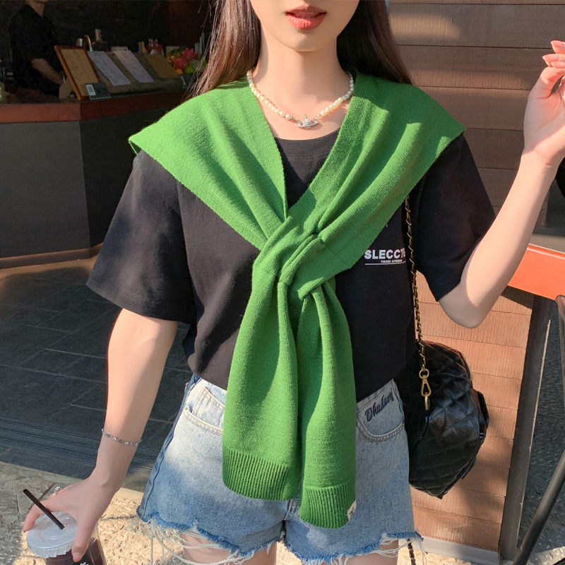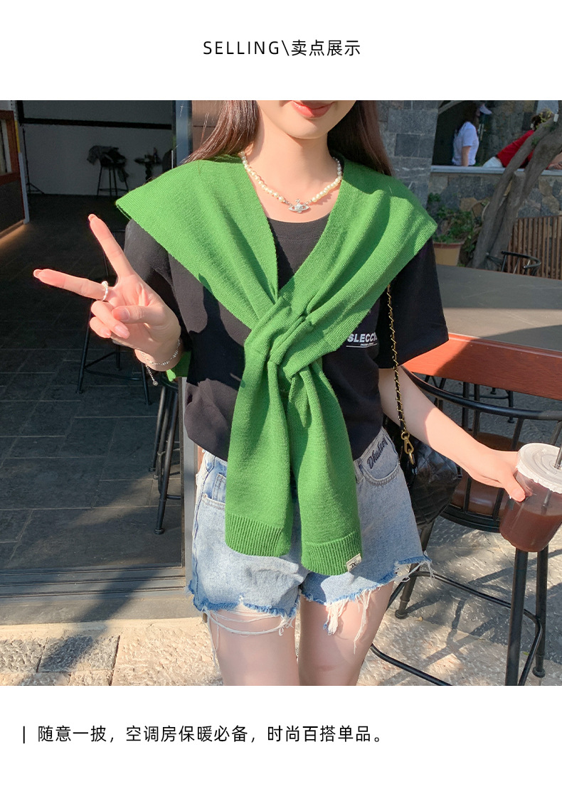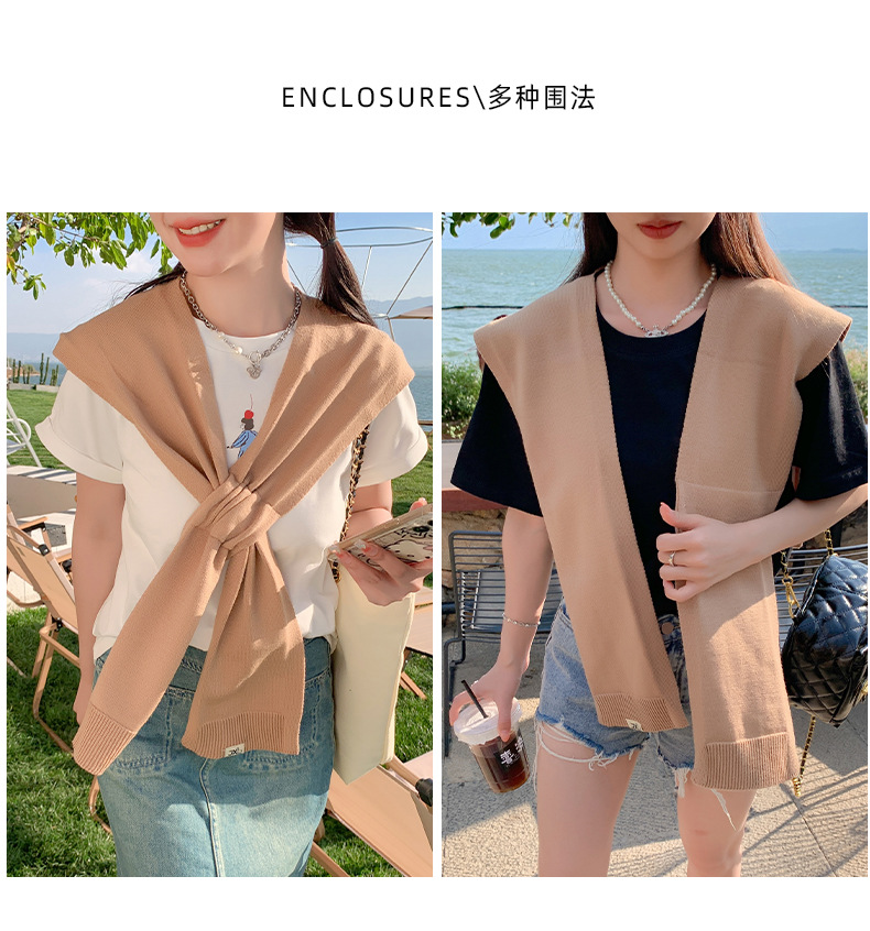 2024 여름 새로운 자외선 차단제 목도리 여성 외장 단색 니트 다용도 작은 사각형 에어컨 룸 목 보호 작은 양복 조끼스토어 가기