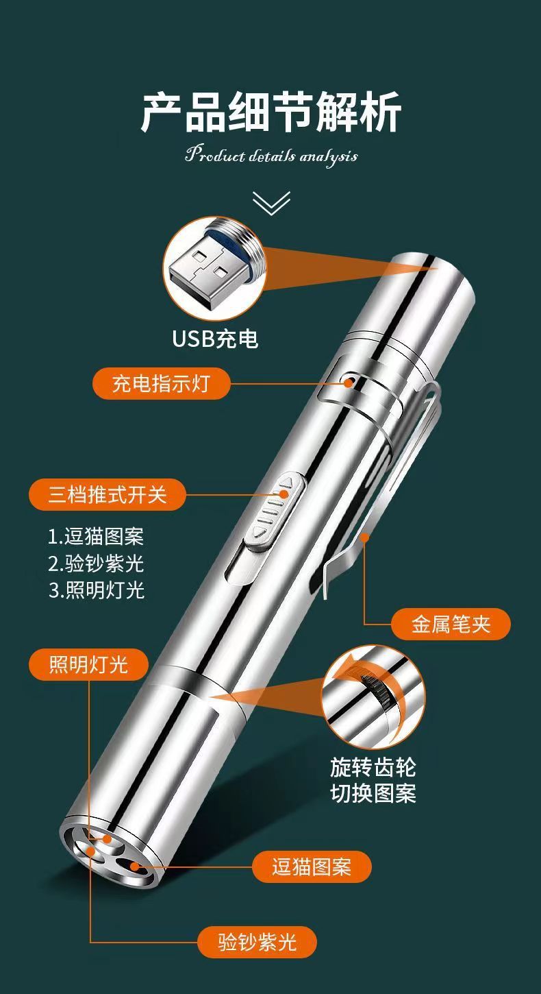 고양이 장난감 아마존 USB 충전 다기능 다섯 패턴 레이저 적외선 레이저 고양이 장난감 스틱스토어 가기