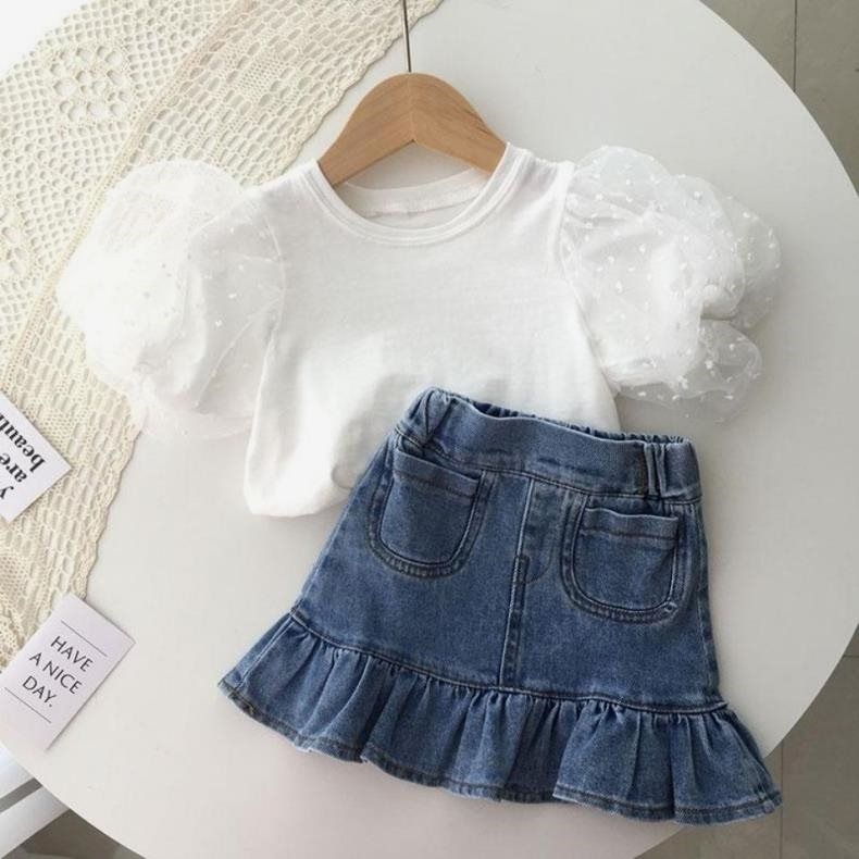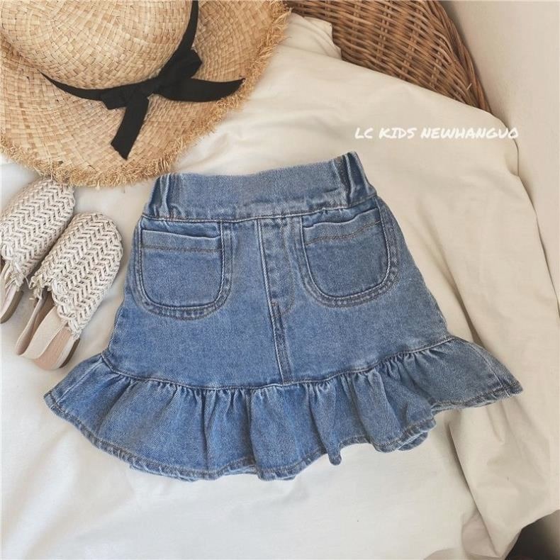 여자 여름 데님 스커트 2025 새로운 스타일 아기 소녀 유행 피쉬 테일 스커트 어린이 프릴 스커트 유행스토어 가기