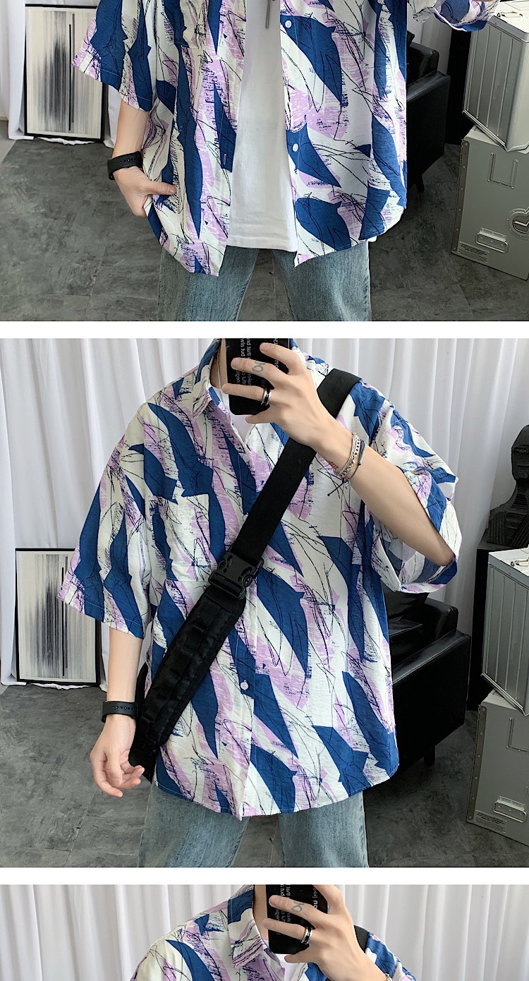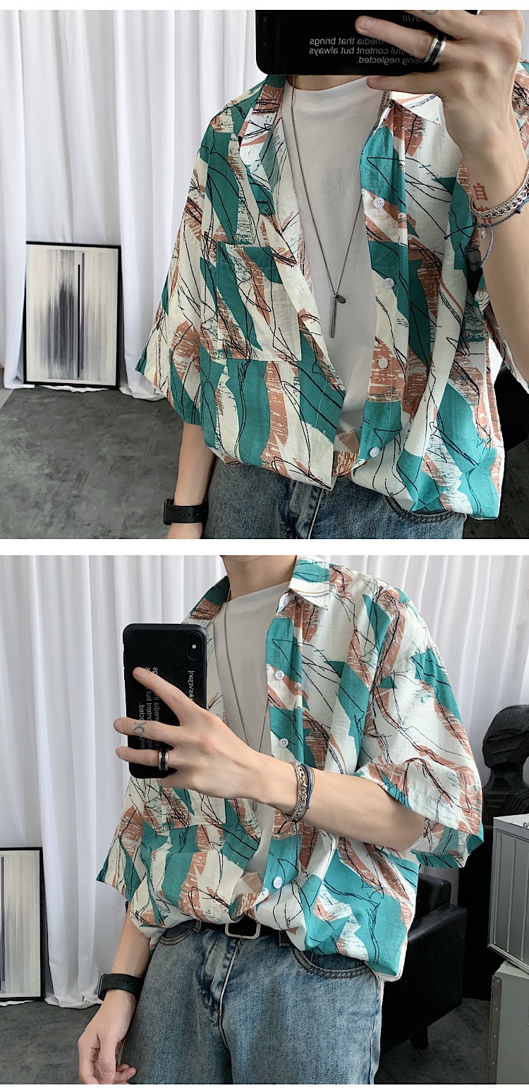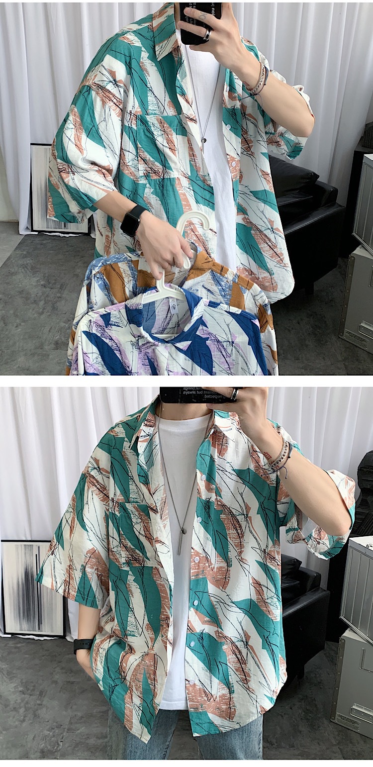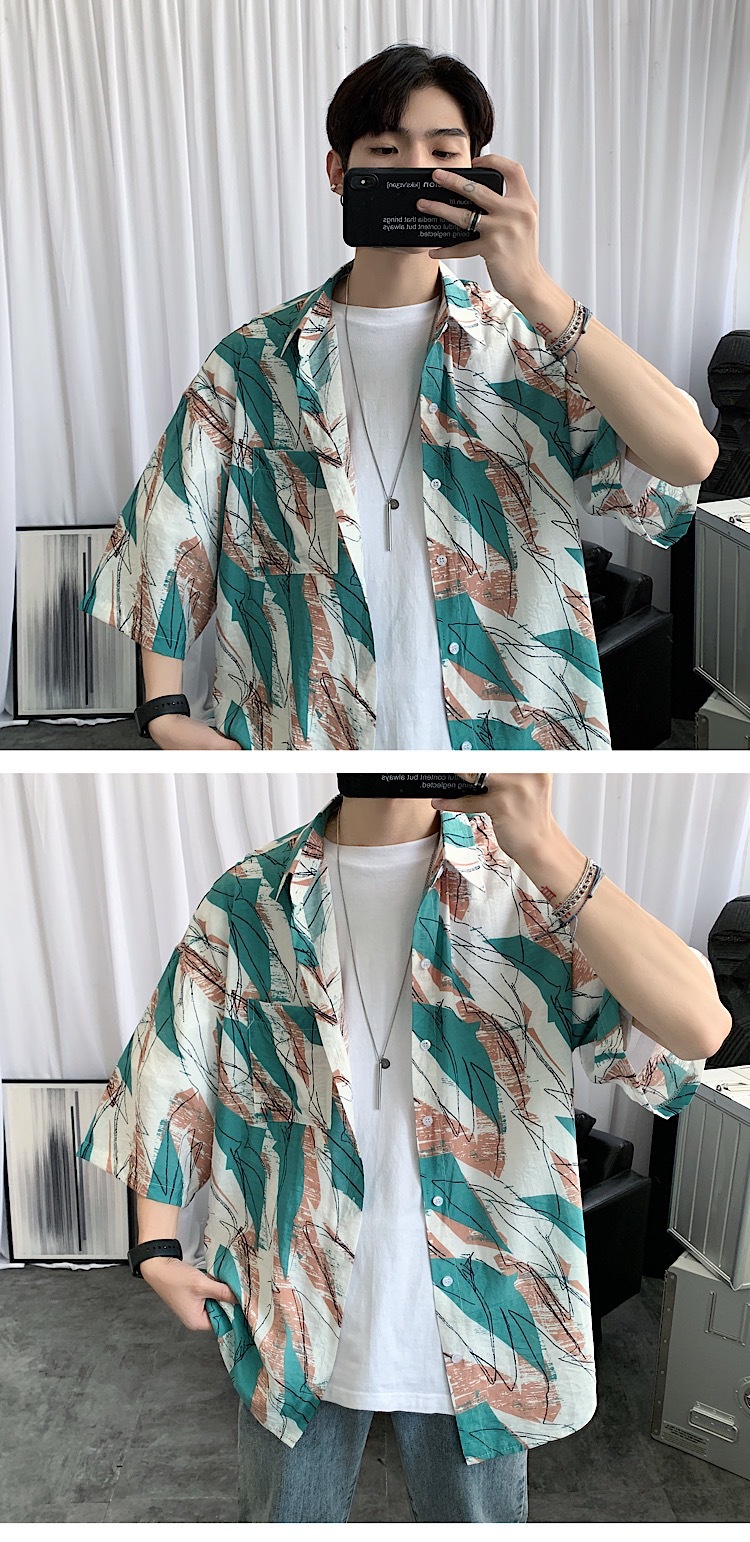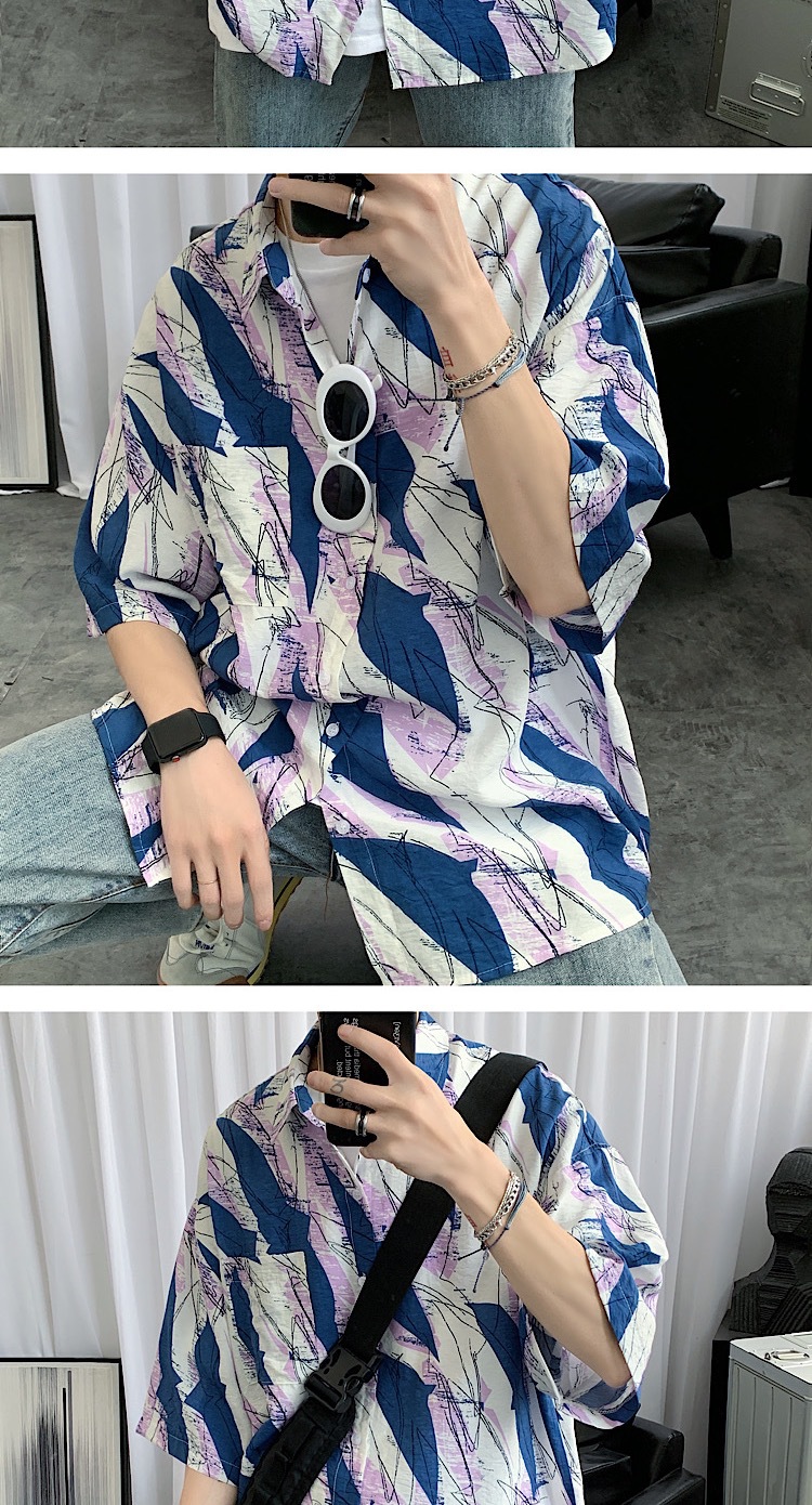 2024 년 여름 트렌디 셔츠 남자 루즈 탑 올매치 독특한 반팔 셔츠 남자 한국식 얇은 셔츠스토어 가기