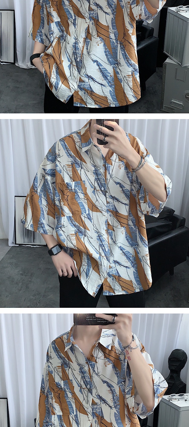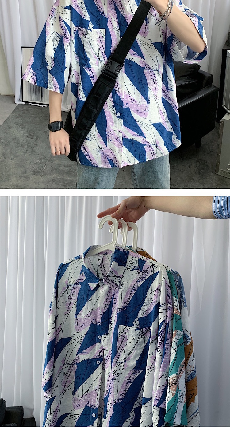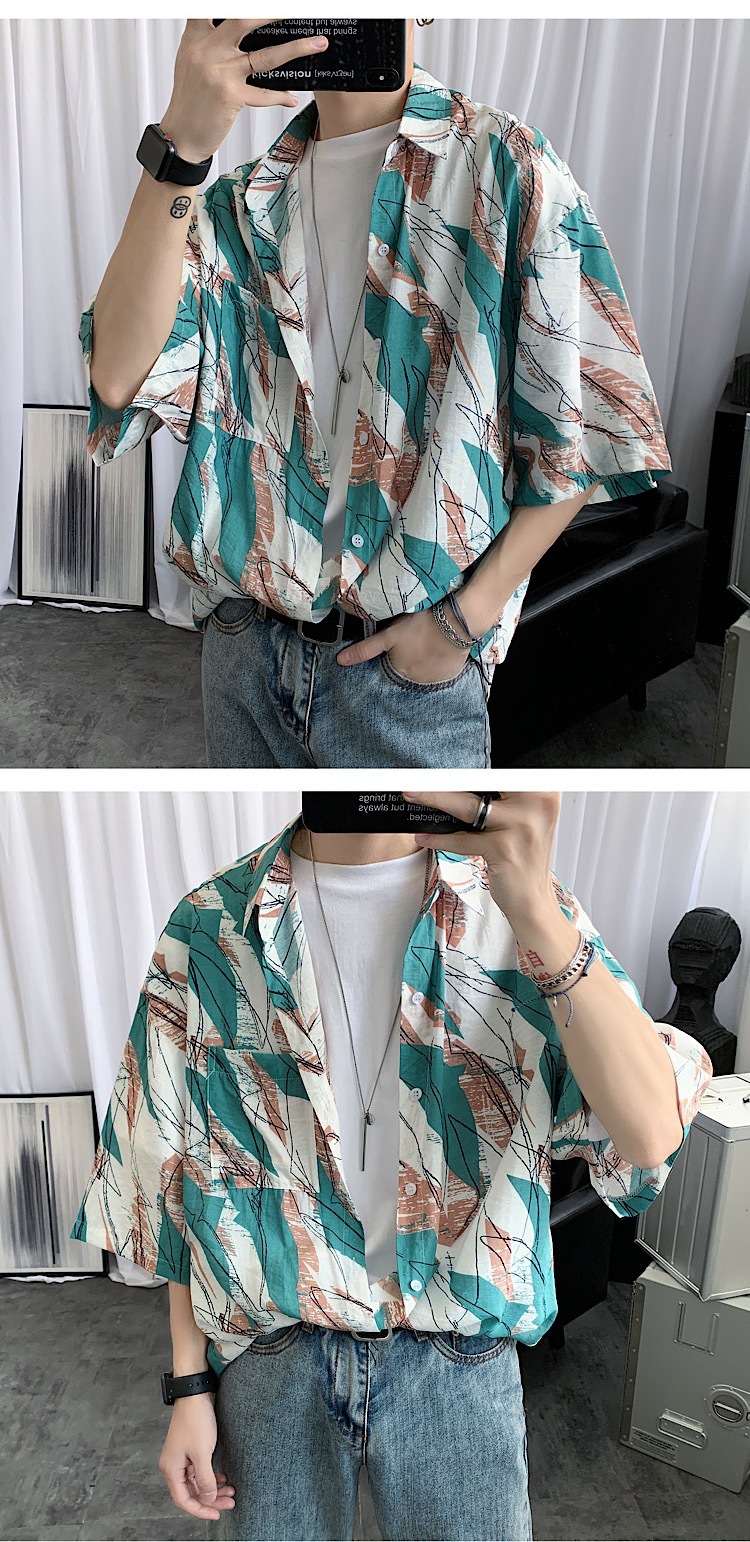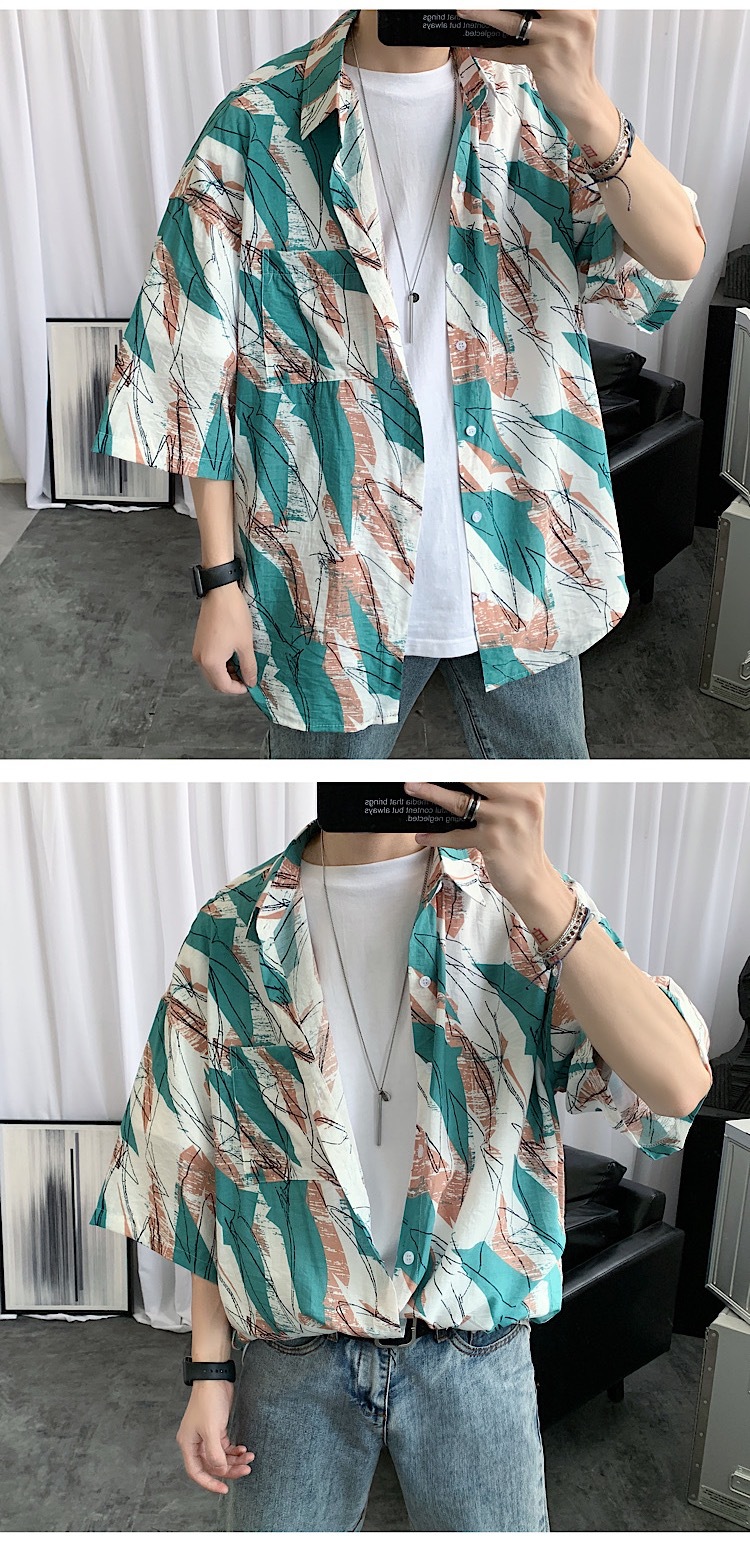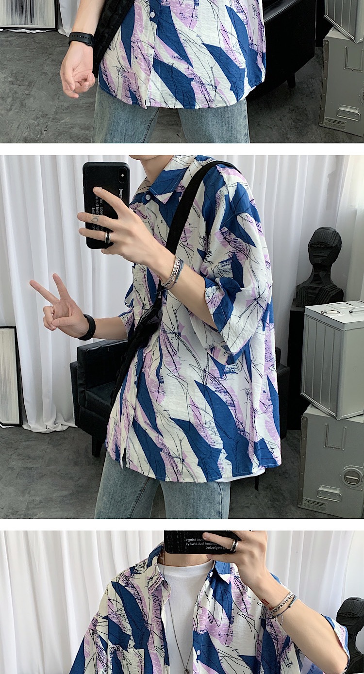 2024 년 여름 트렌디 셔츠 남자 루즈 탑 올매치 독특한 반팔 셔츠 남자 한국식 얇은 셔츠스토어 가기