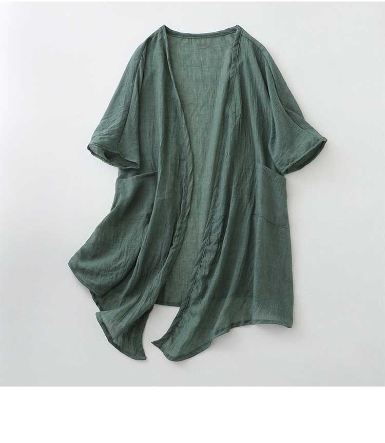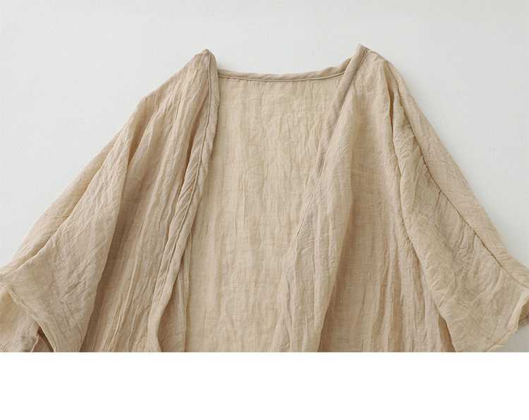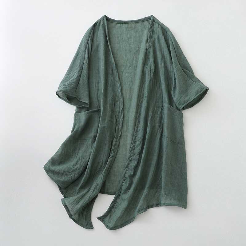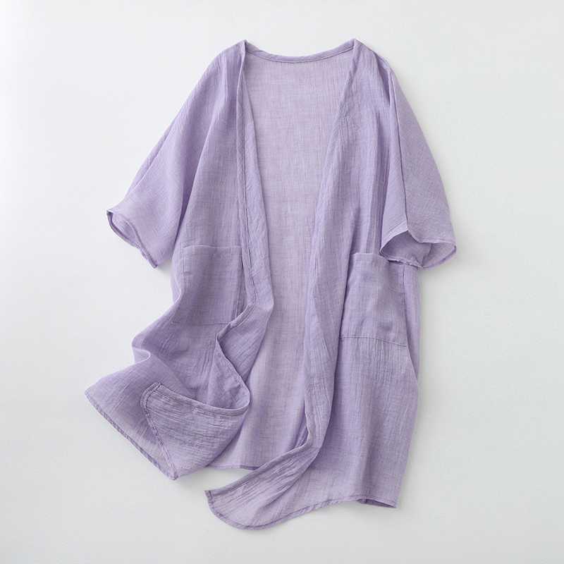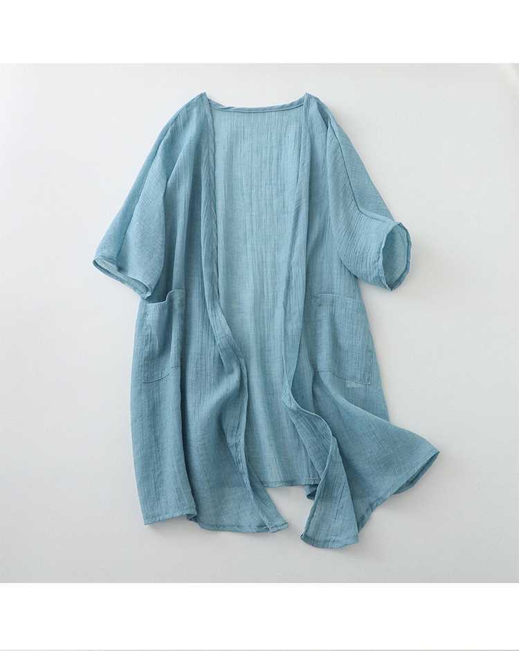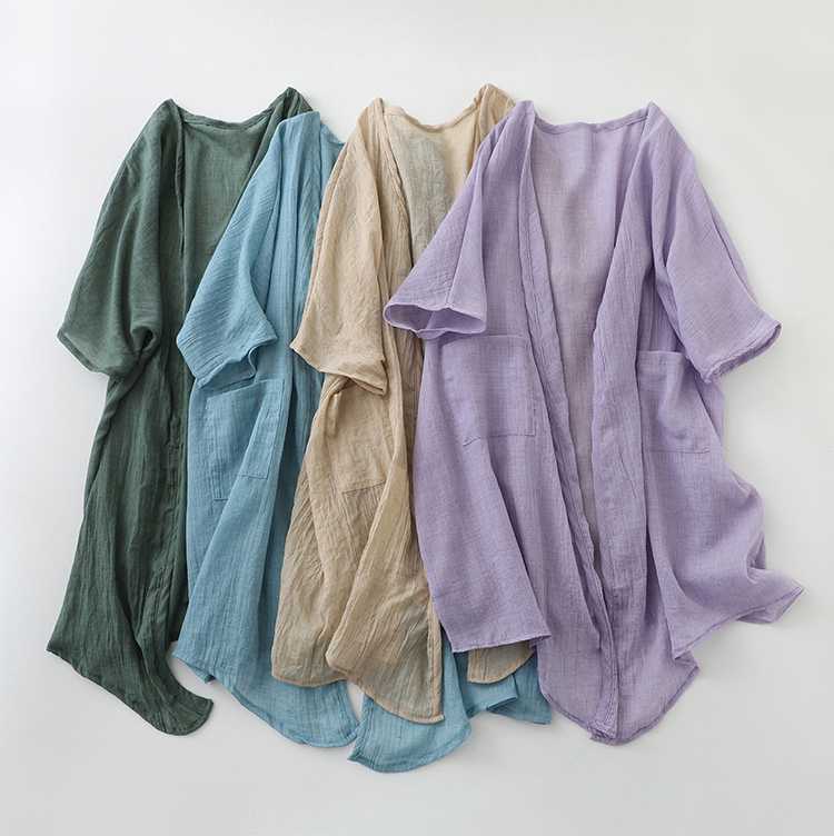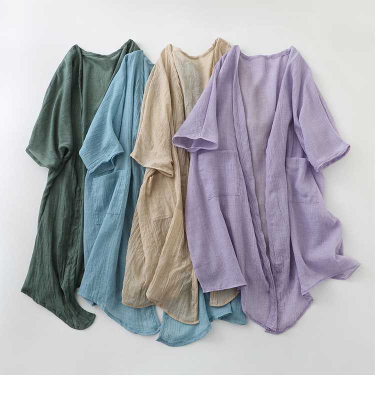 리얼 샷 재고 초박형 코튼 리넨 느슨한 카디건 여자 중간 길이의 숄 재킷 외부 플러스 사이즈 선 스크린 셔츠