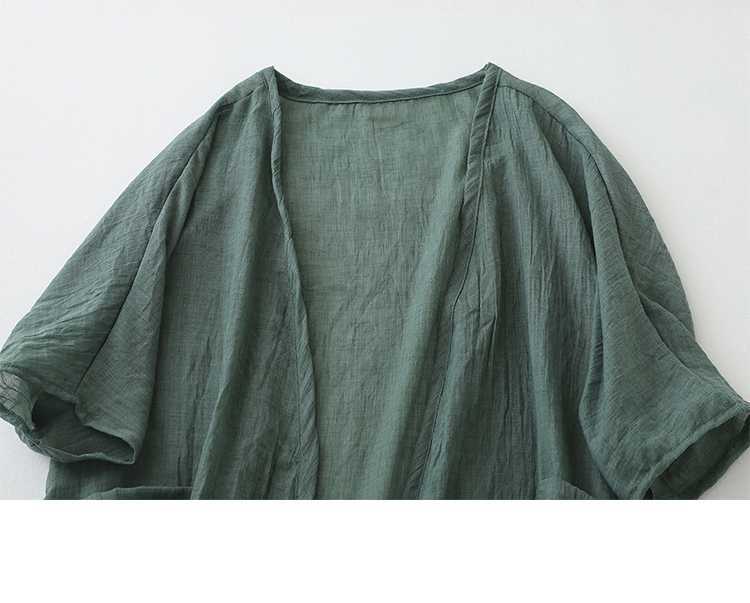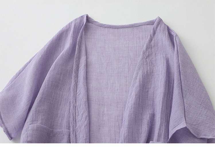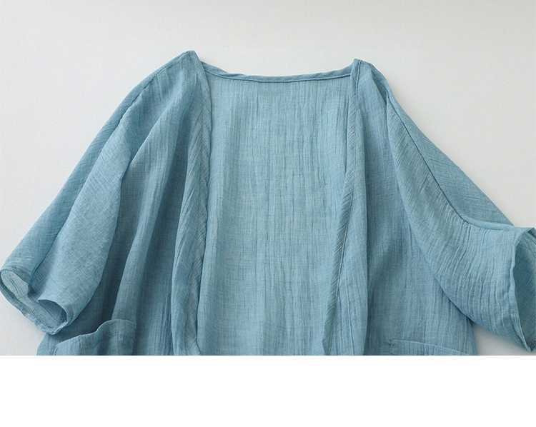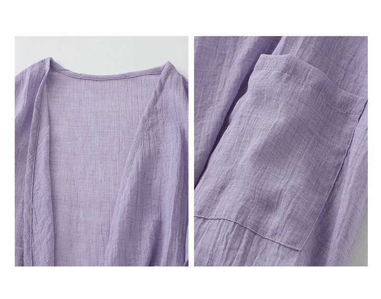 리얼 샷 재고 초박형 코튼 리넨 느슨한 카디건 여자 중간 길이의 숄 재킷 외부 플러스 사이즈 선 스크린 셔츠스토어 가기