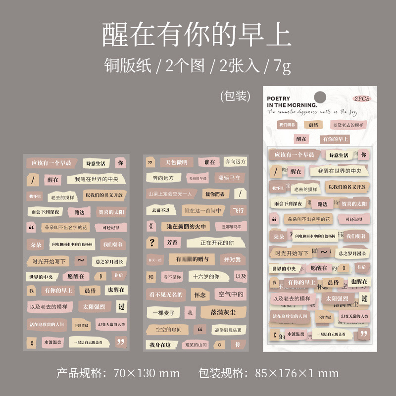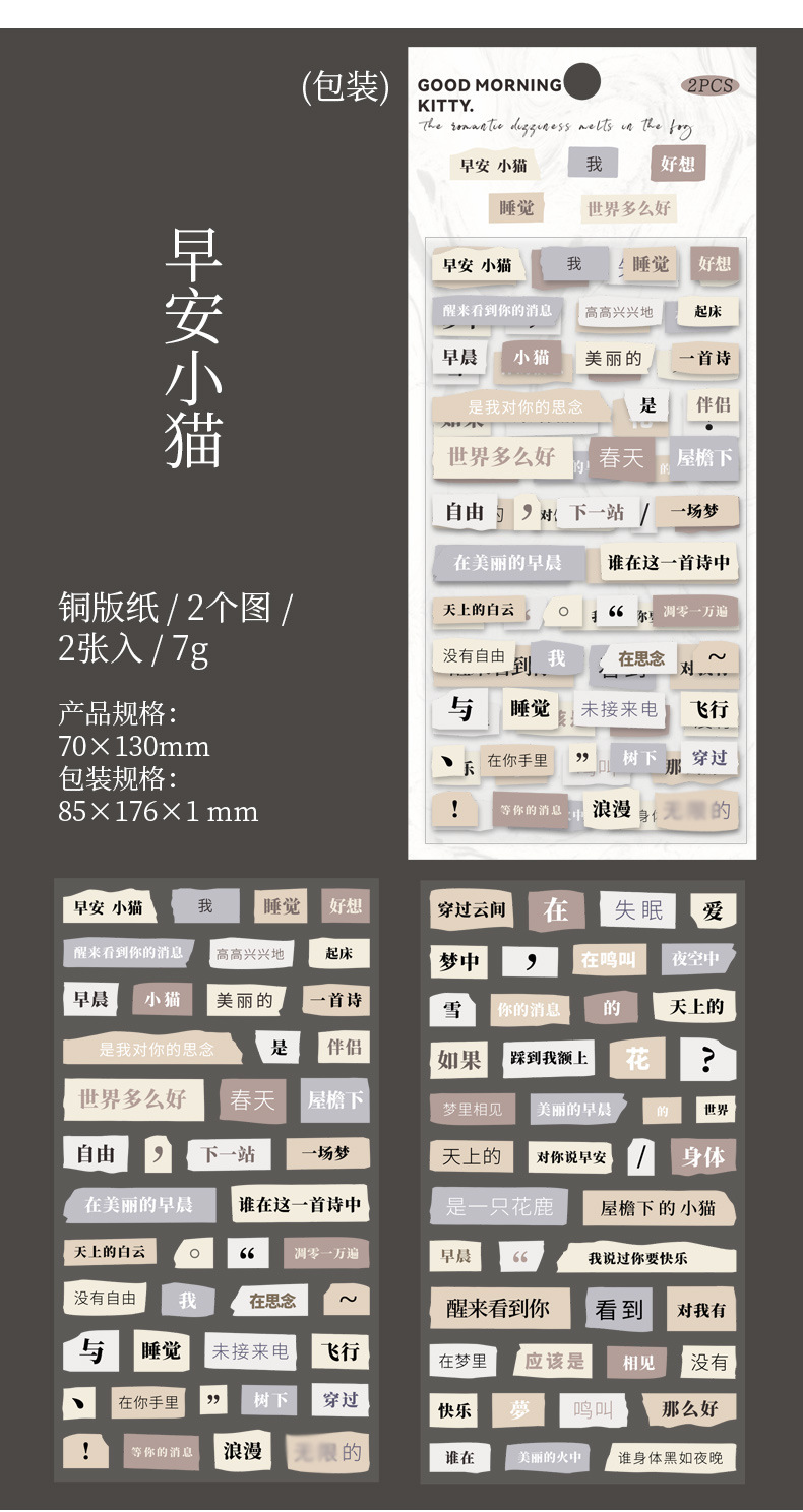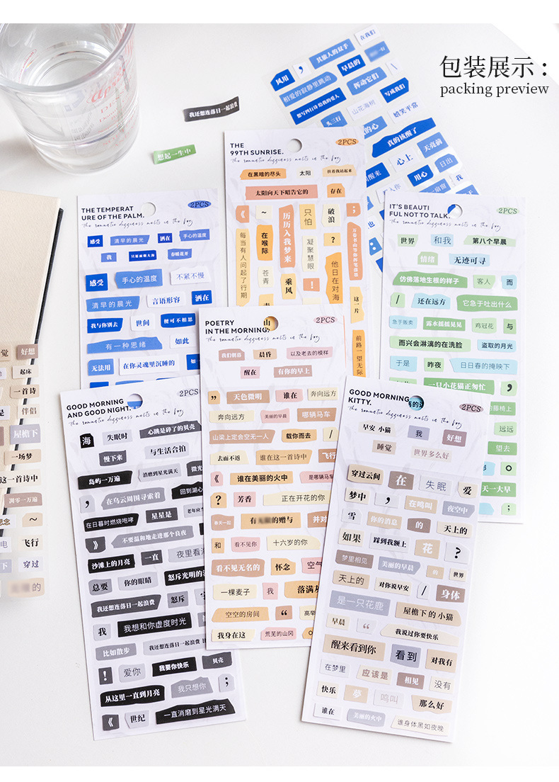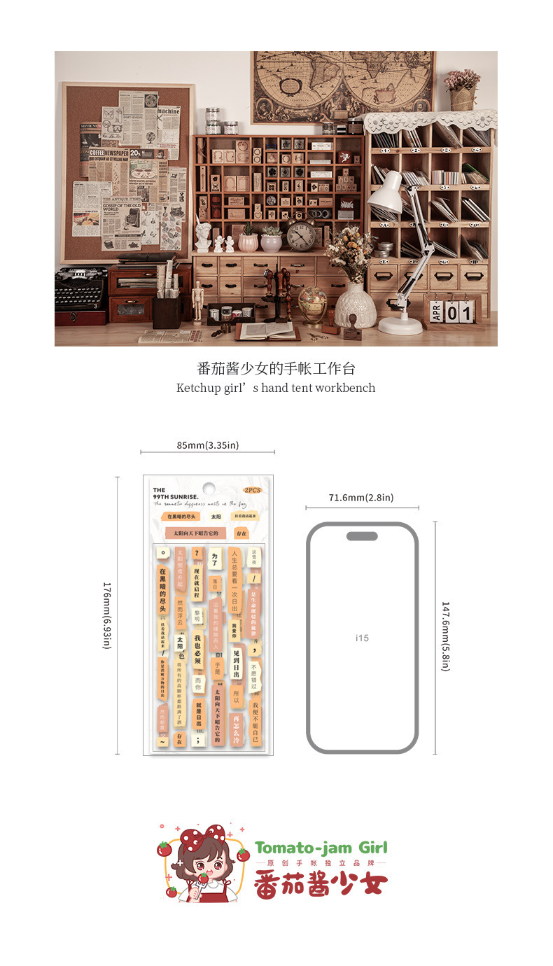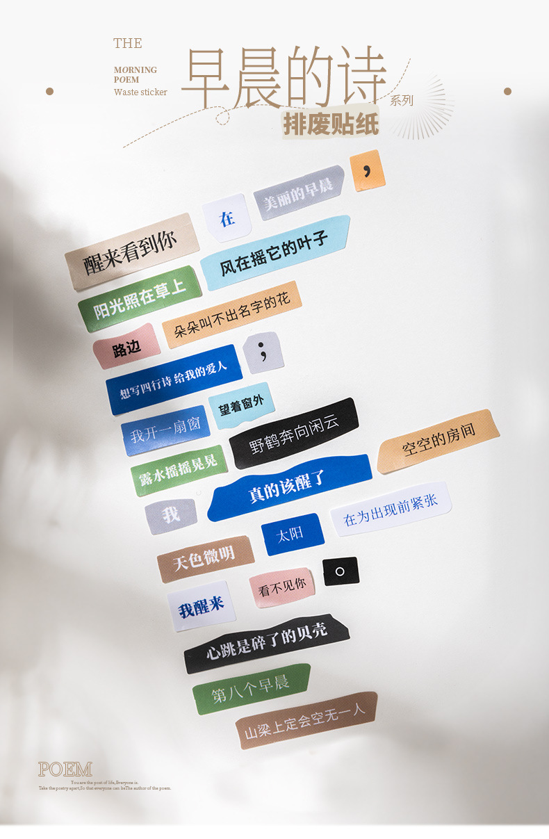 케첩 폐기물 코팅 종이 스티커 아침시 시리즈 로맨틱 텍스트 손 계정 휴대 전화 다시 카드 diy 장식