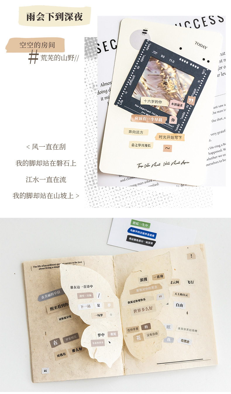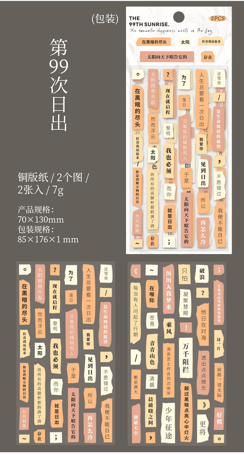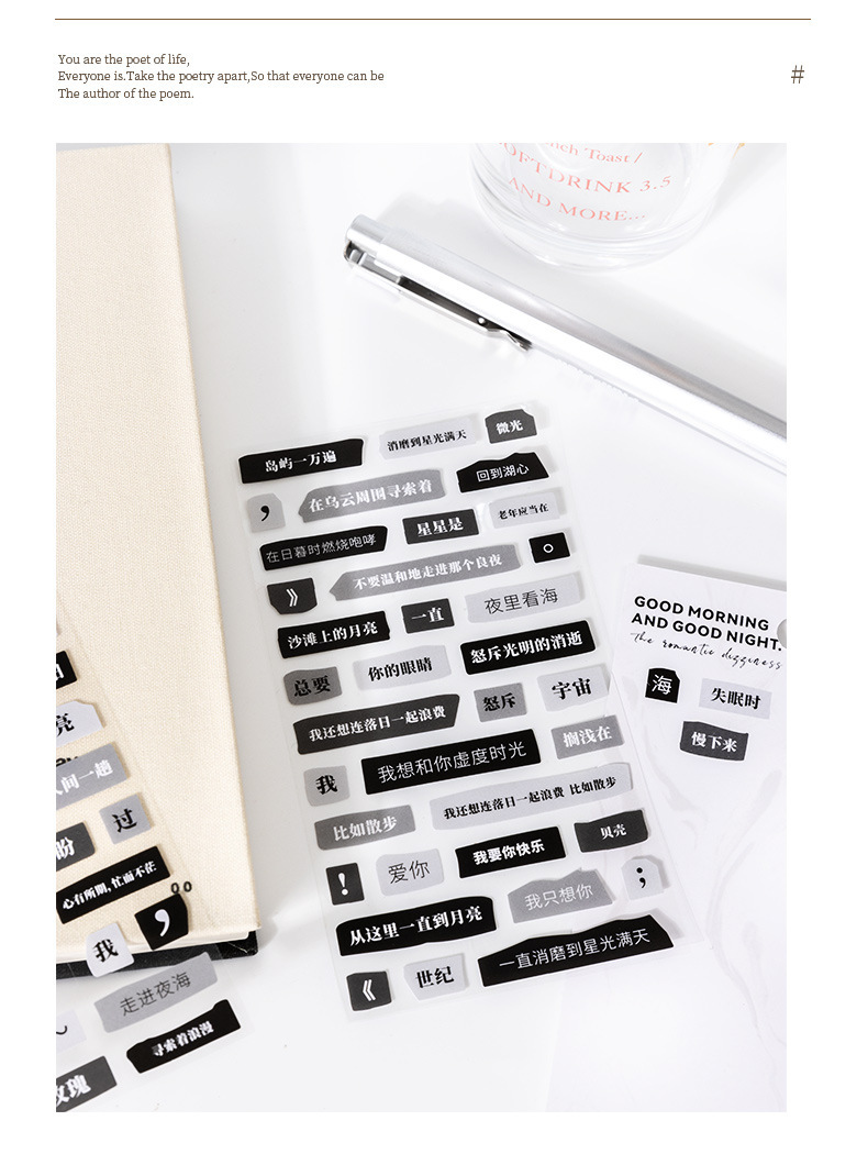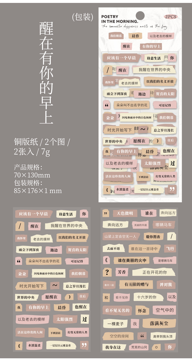 케첩 폐기물 코팅 종이 스티커 아침시 시리즈 로맨틱 텍스트 손 계정 휴대 전화 다시 카드 diy 장식