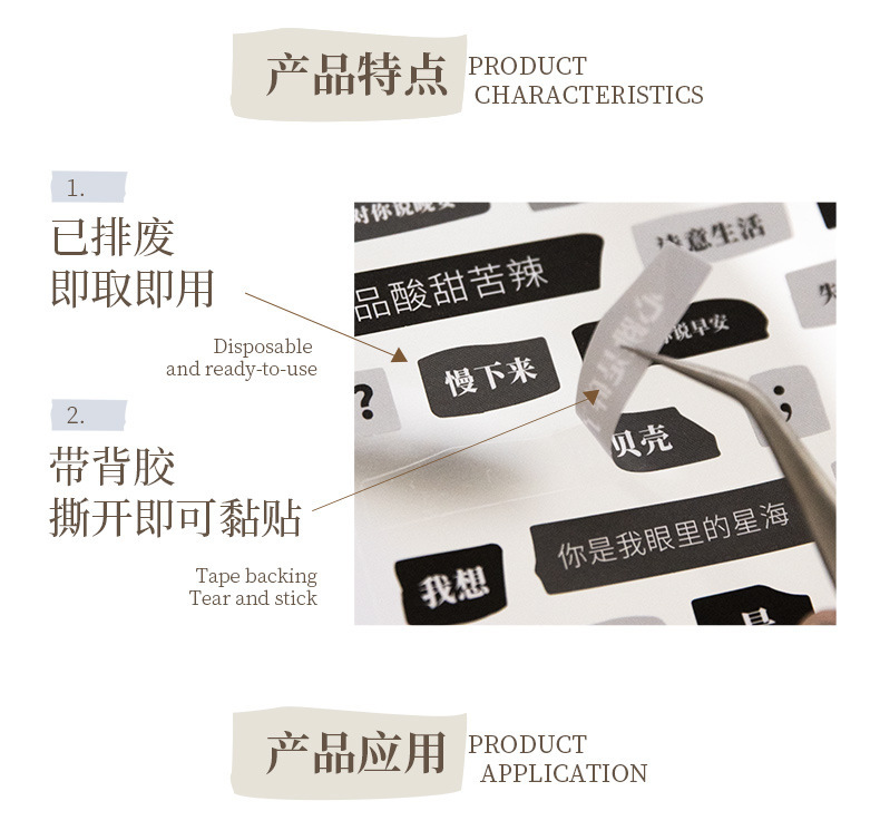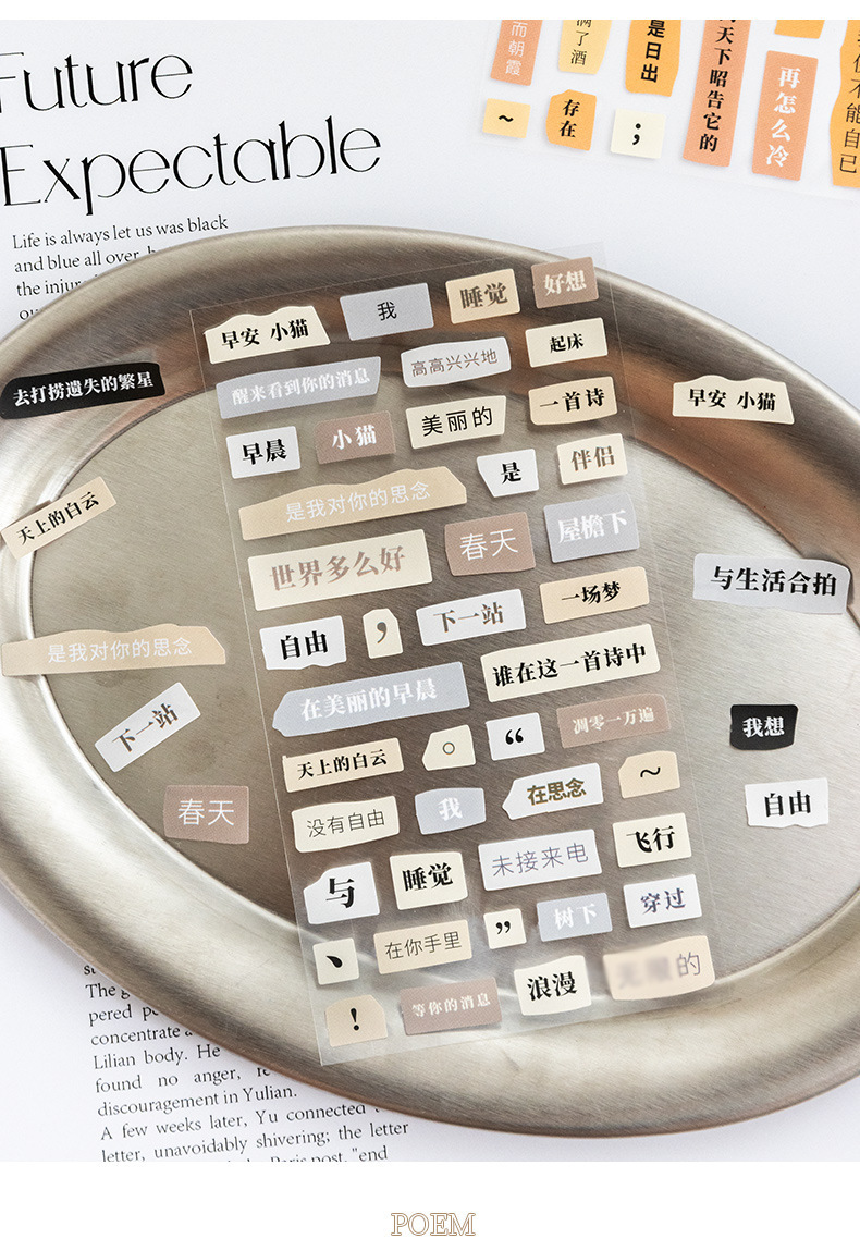 케첩 폐기물 코팅 종이 스티커 아침시 시리즈 로맨틱 텍스트 손 계정 휴대 전화 다시 카드 diy 장식스토어 가기