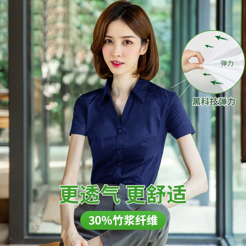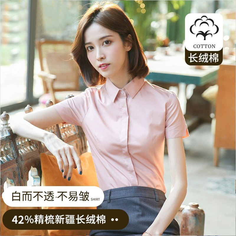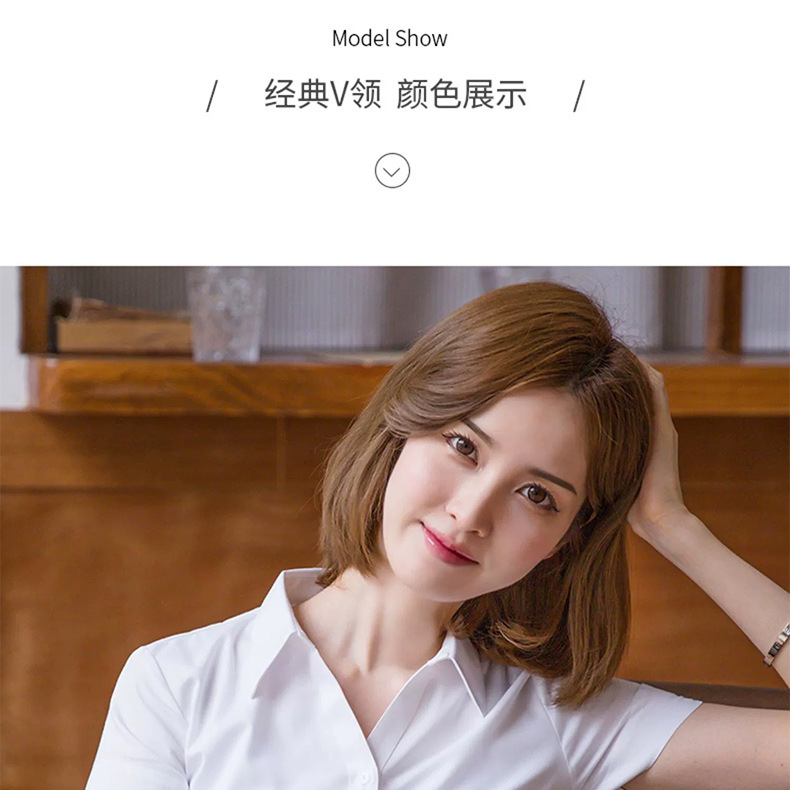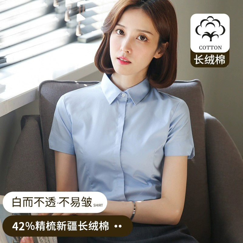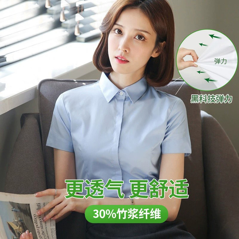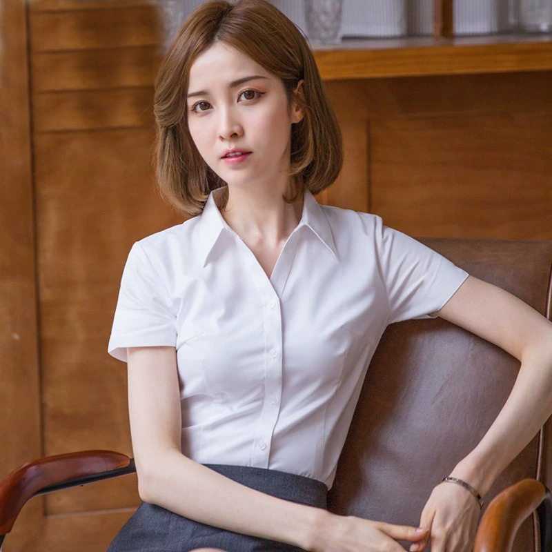 여성용 흰색 셔츠 반팔 2025 신상 봄 여름 코트 정장 스타일 인기 반팔 셔츠 작업복스토어 가기