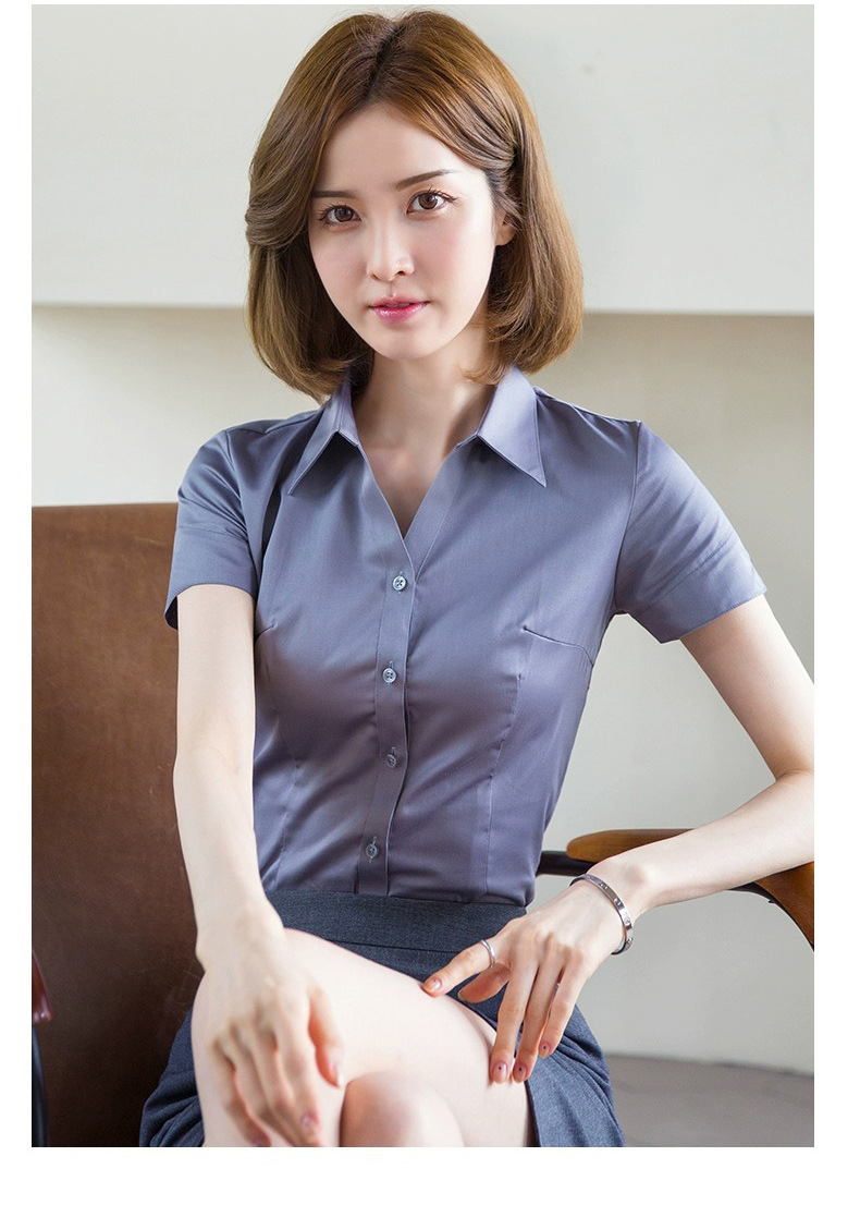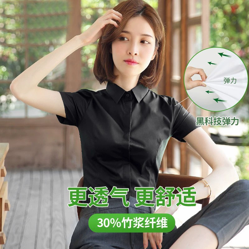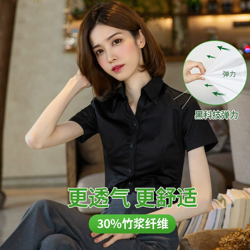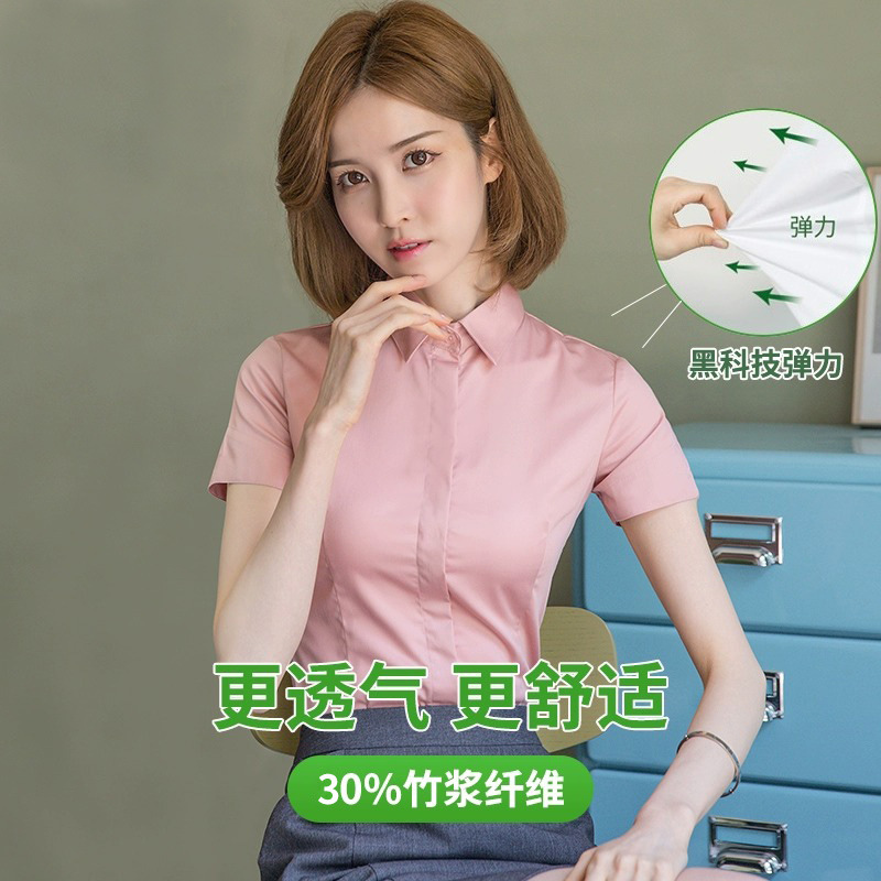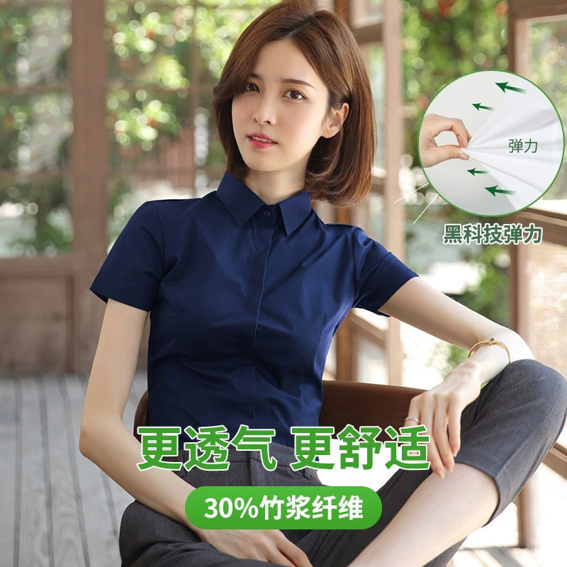 여성용 흰색 셔츠 반팔 2025 신상 봄 여름 코트 정장 스타일 인기 반팔 셔츠 작업복스토어 가기