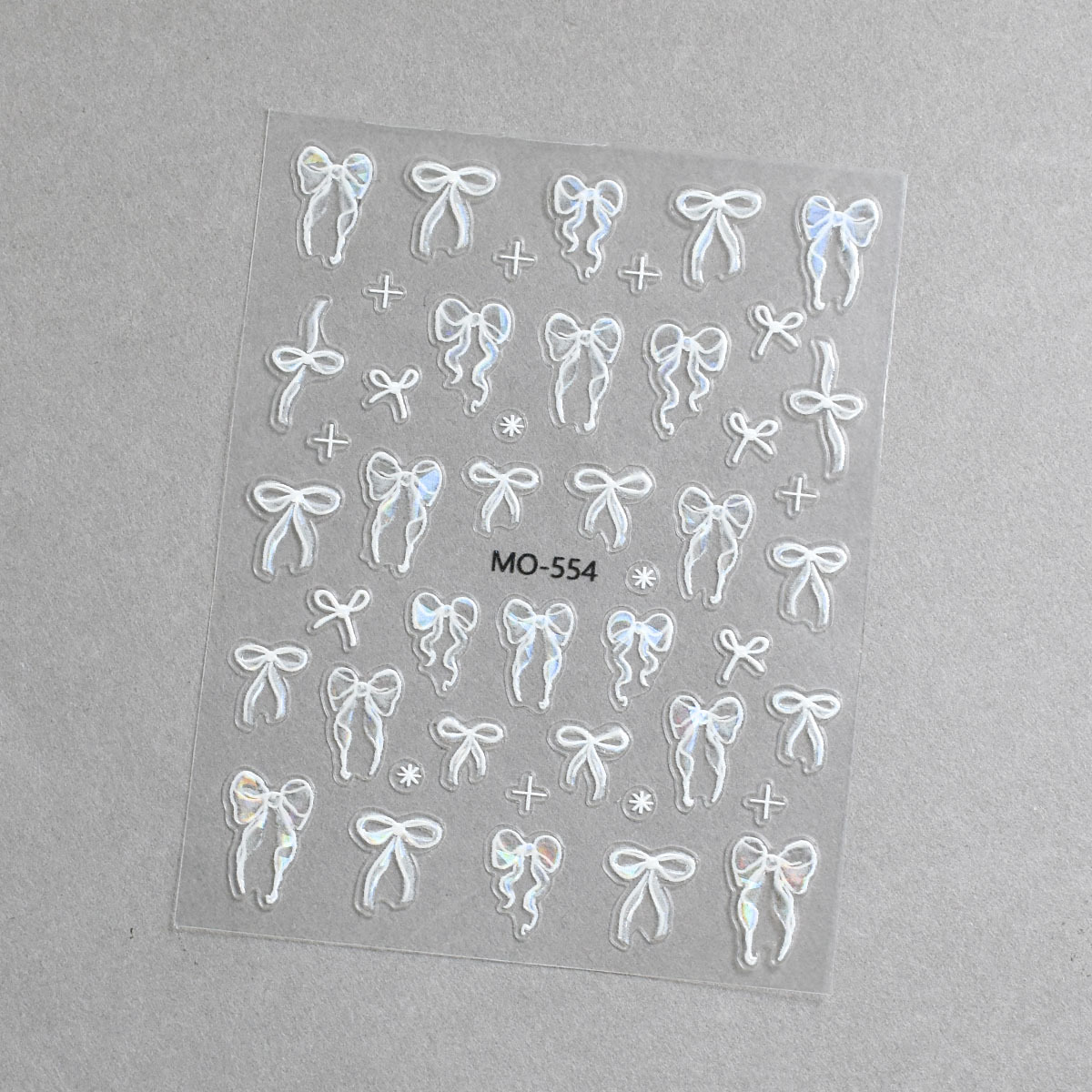 활 네일 아트 스티커 릴리프 스테레오 귀여운 소녀의 심장 핑크 화이트 리본 활 네일 스티커 장식스토어 가기