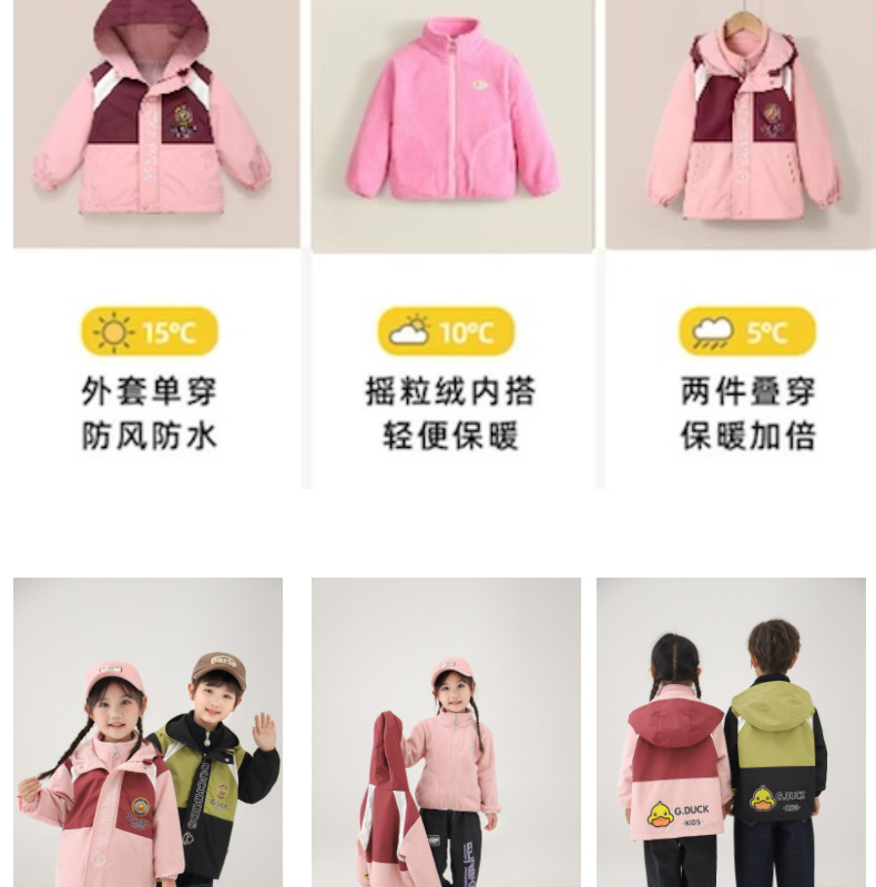 정통 Little Yellow Duck 아동용 3-in-One 재킷 투피스 세트 소년 소녀용, 스타일리시하고 따뜻하며 가벼움스토어 가기