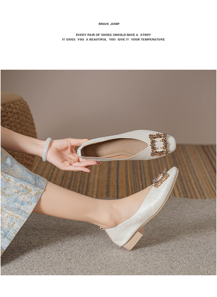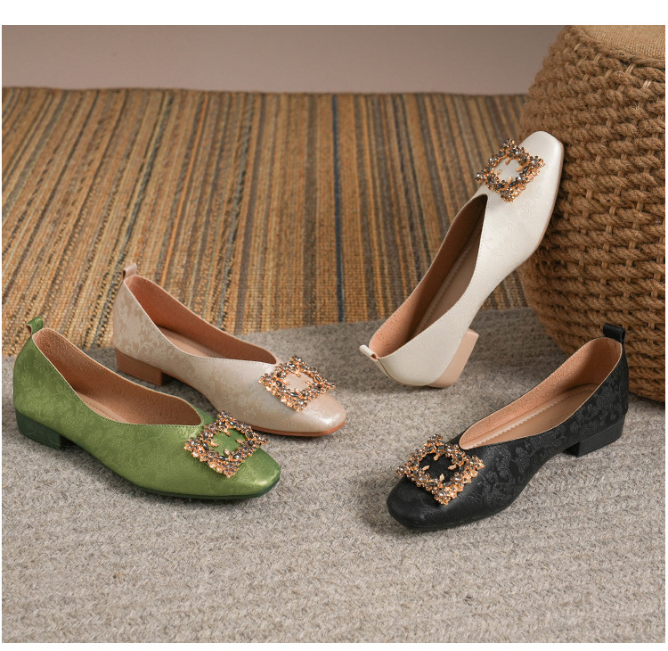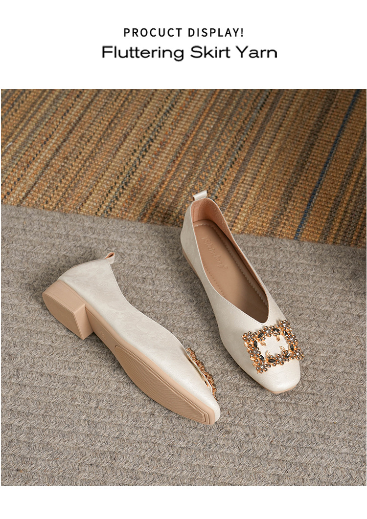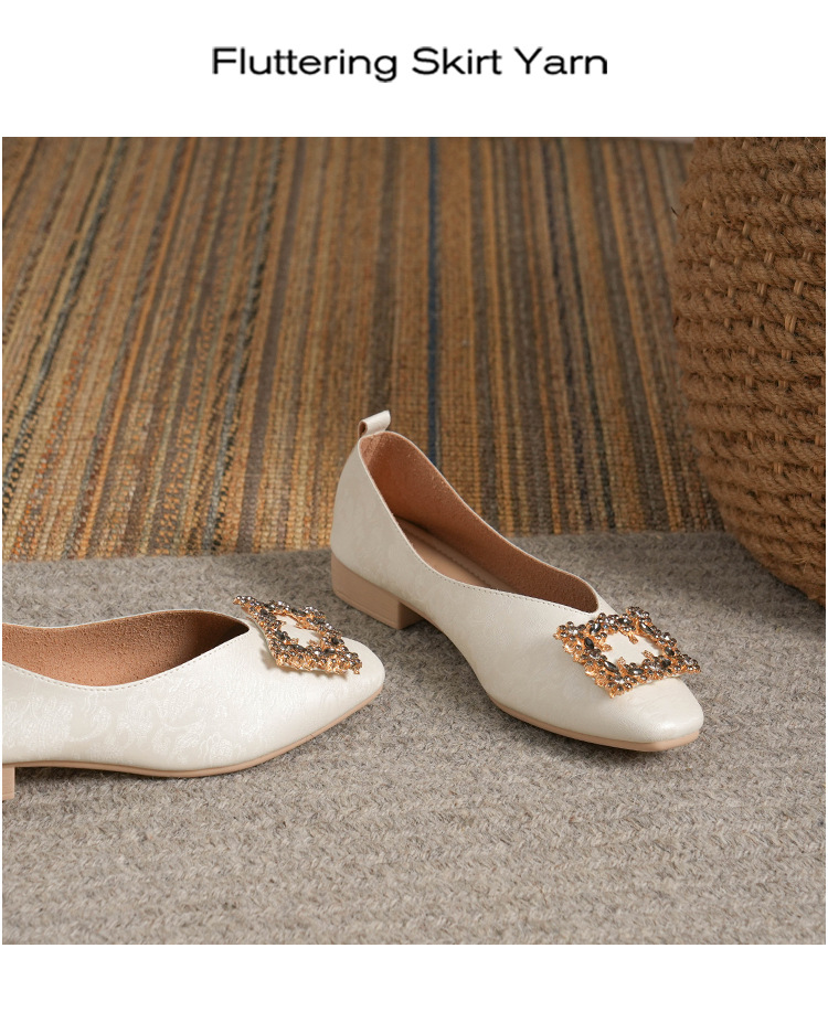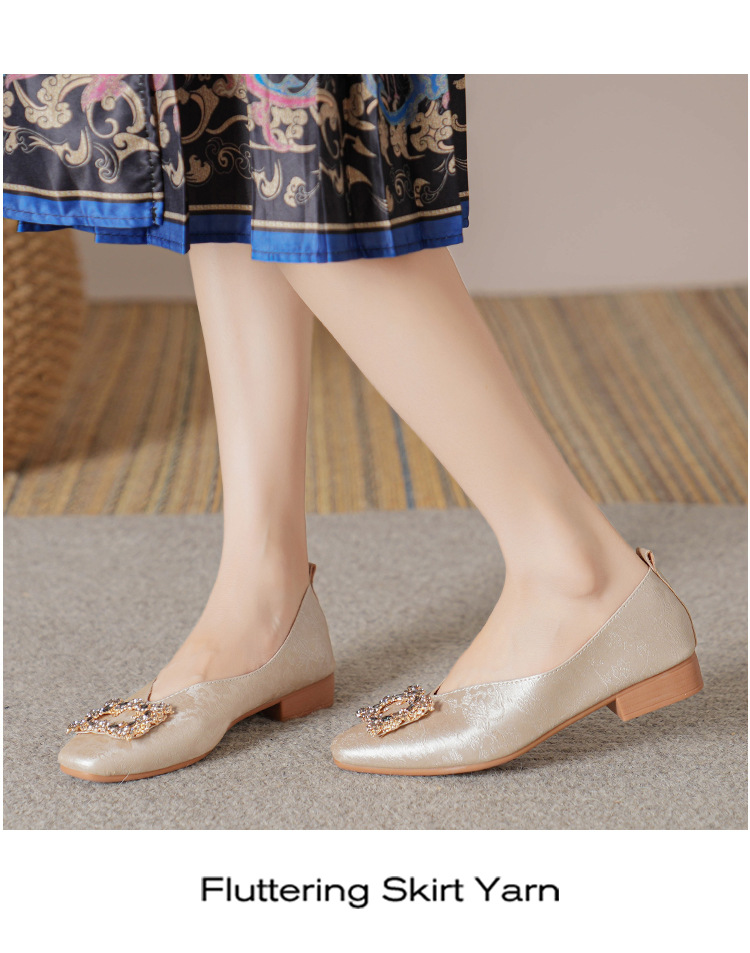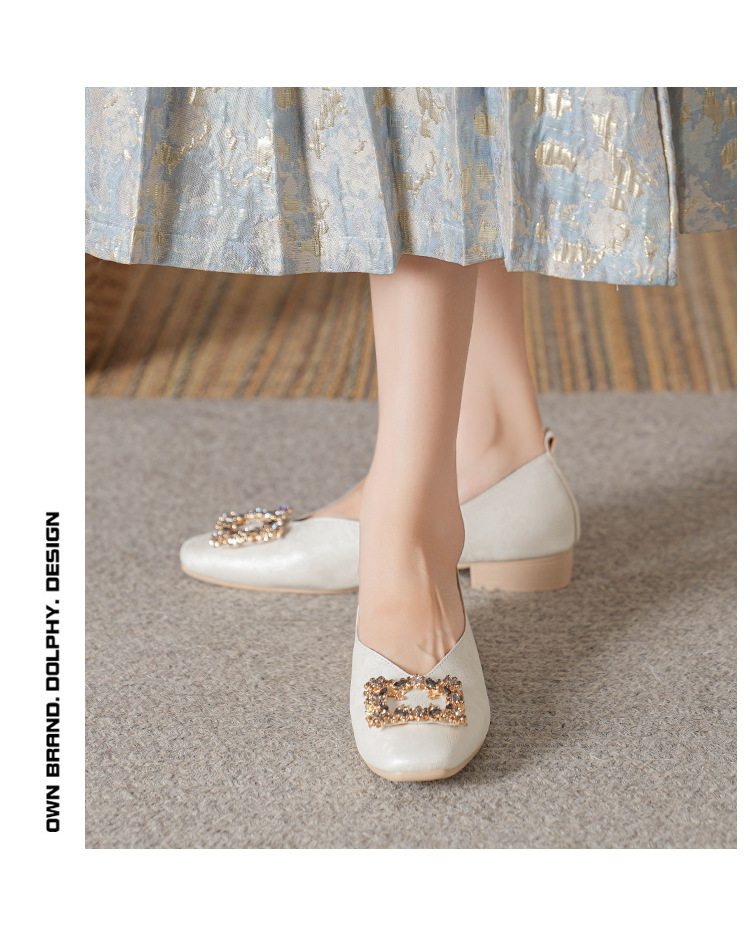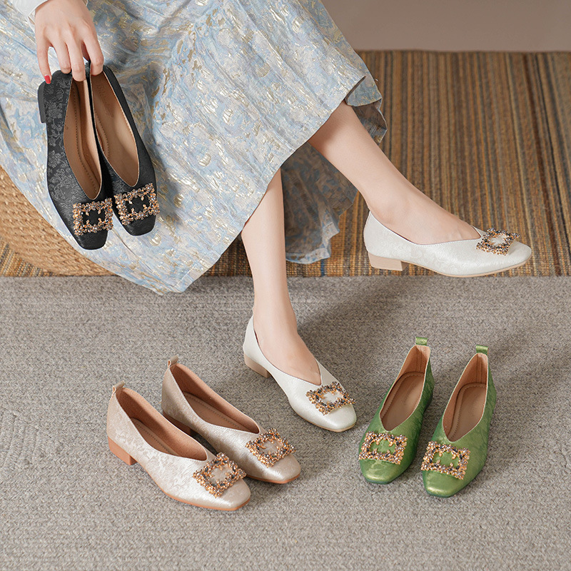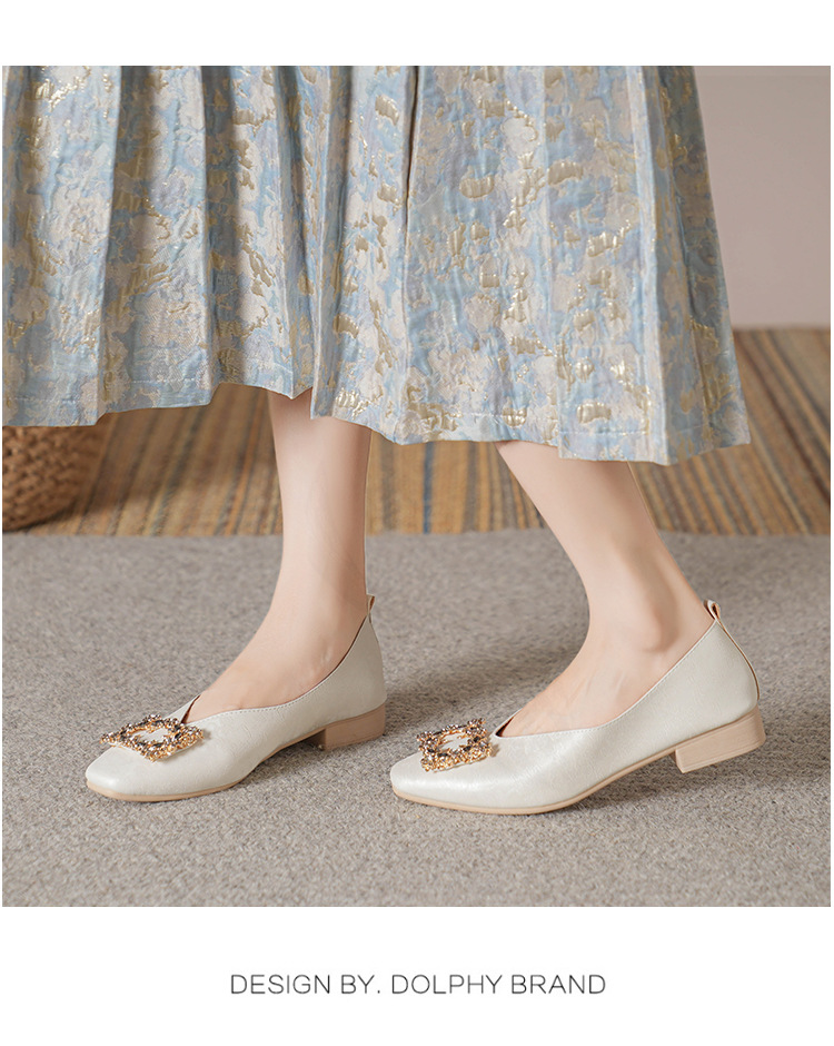 2023 새로운 프랑스 스타일 낮은 발 뒤꿈치 광장 발가락 얕은 입 싱글 신발 여성의 부드러운 바닥 플랫 신발 디자인 센스 틈새 봄과 가을 패션스토어 가기