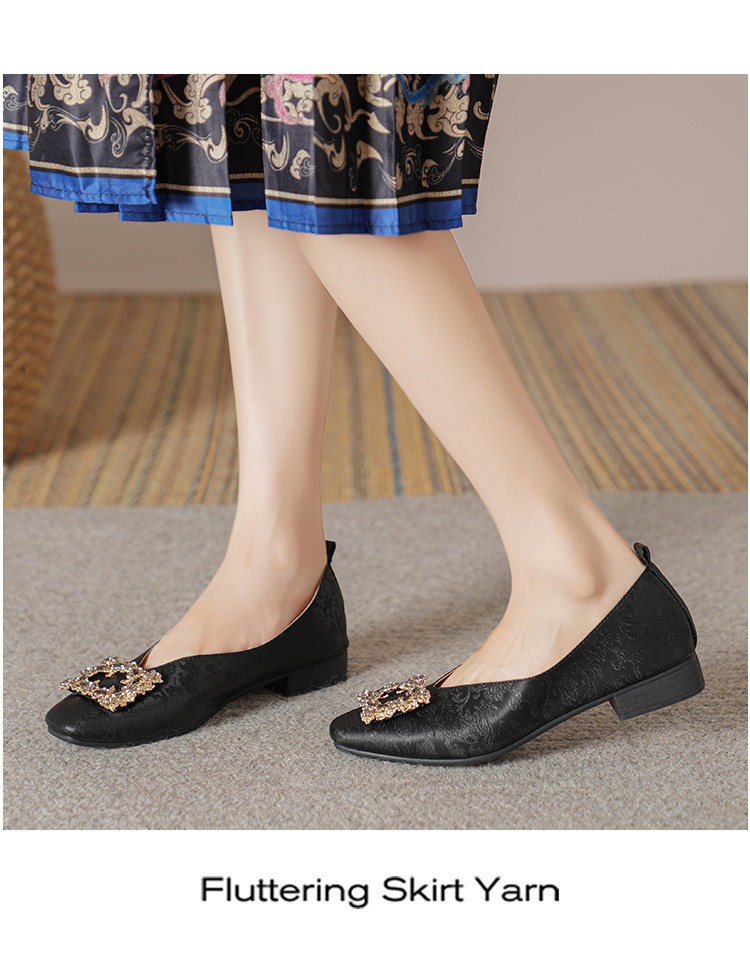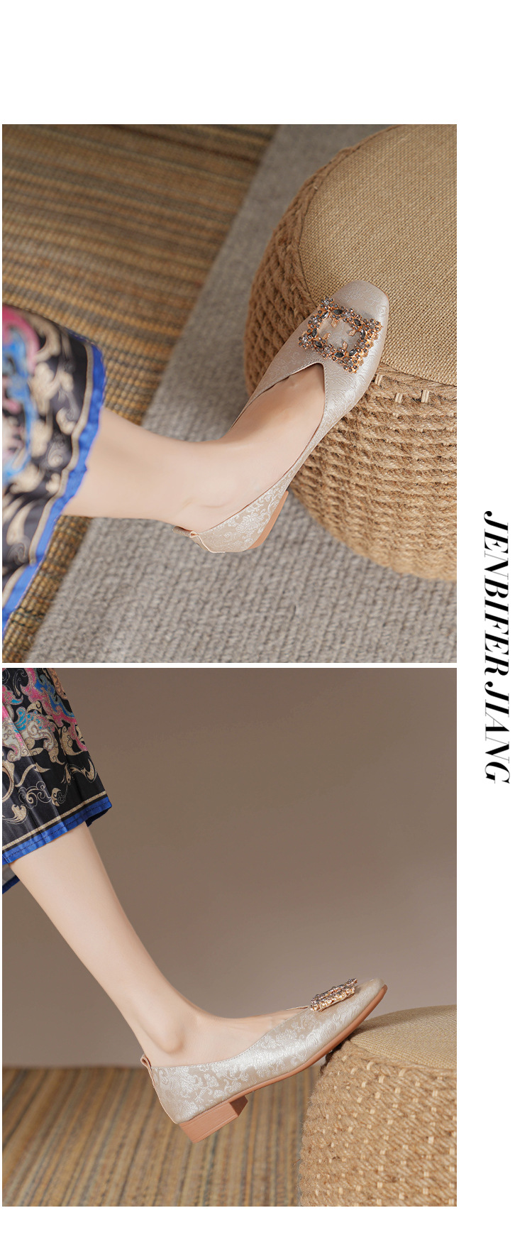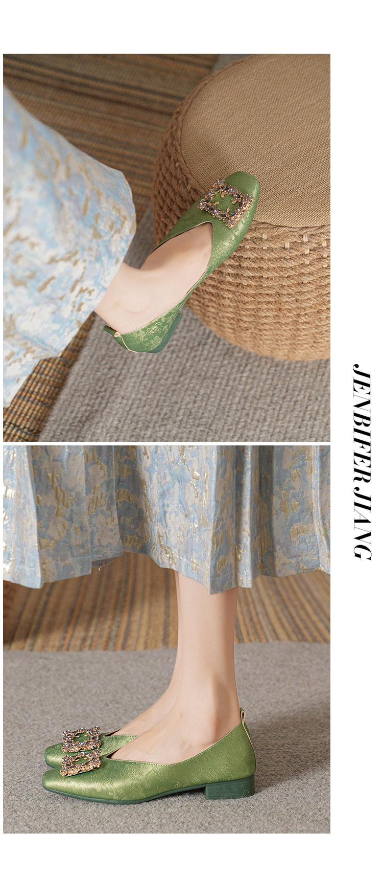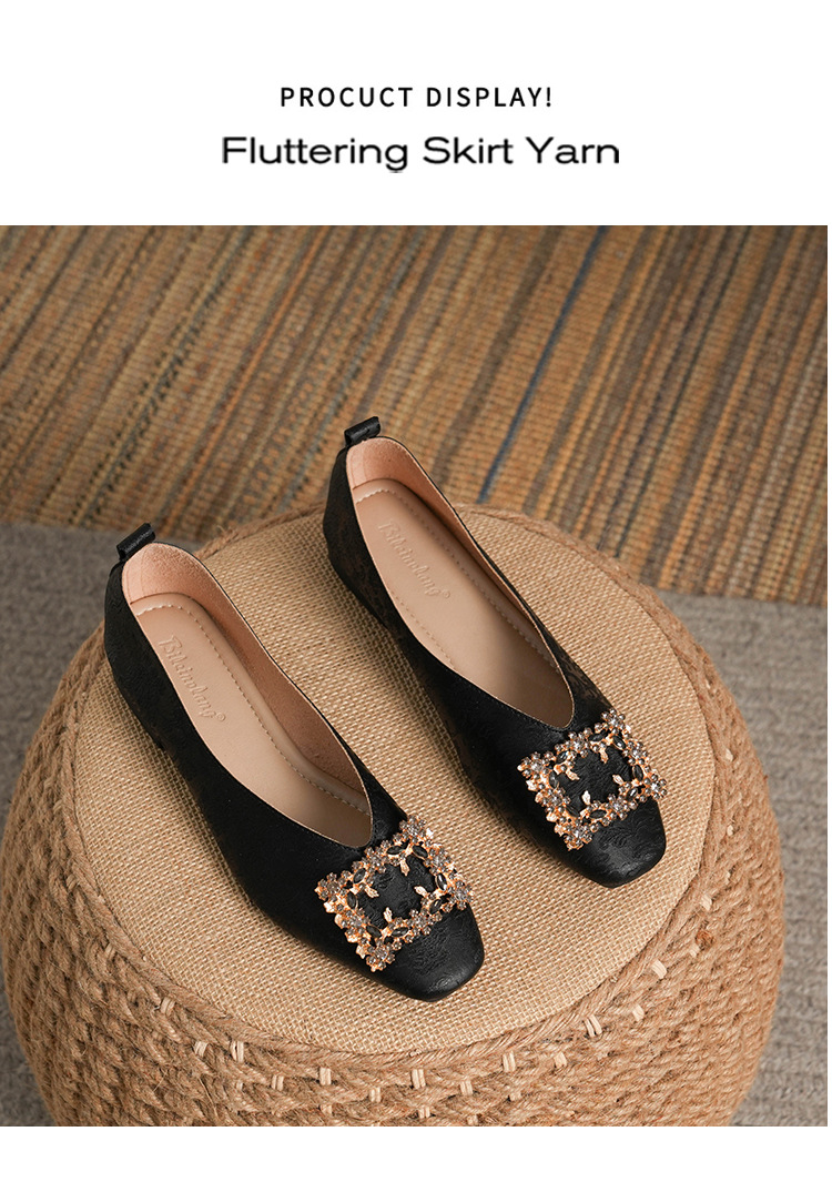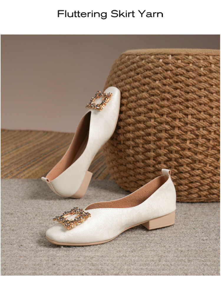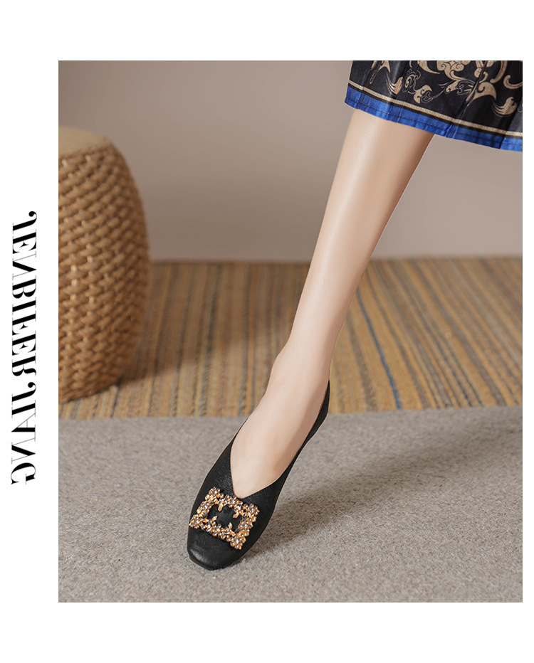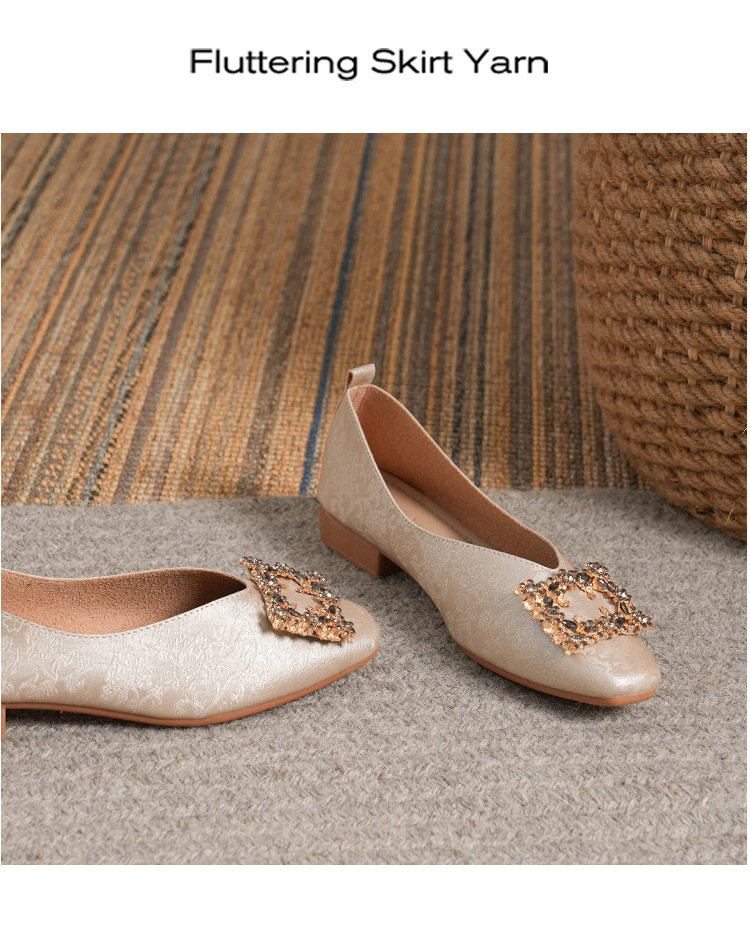 2023 새로운 프랑스 스타일 낮은 발 뒤꿈치 광장 발가락 얕은 입 싱글 신발 여성의 부드러운 바닥 플랫 신발 디자인 센스 틈새 봄과 가을 패션스토어 가기