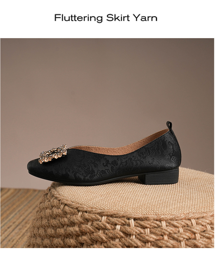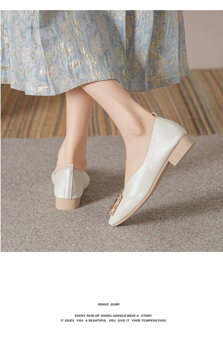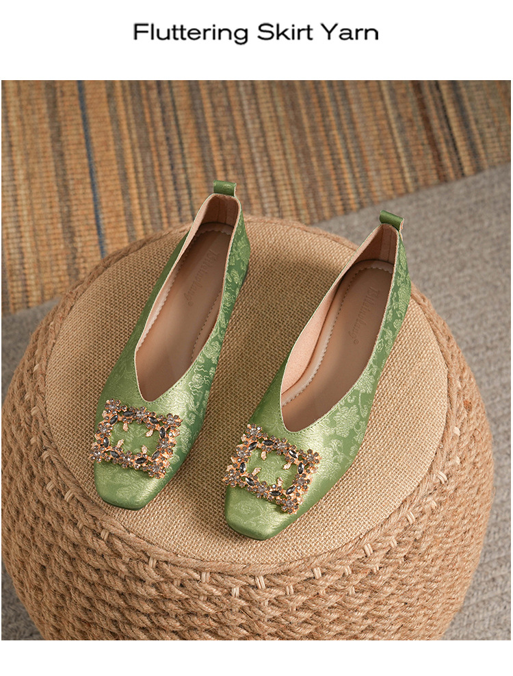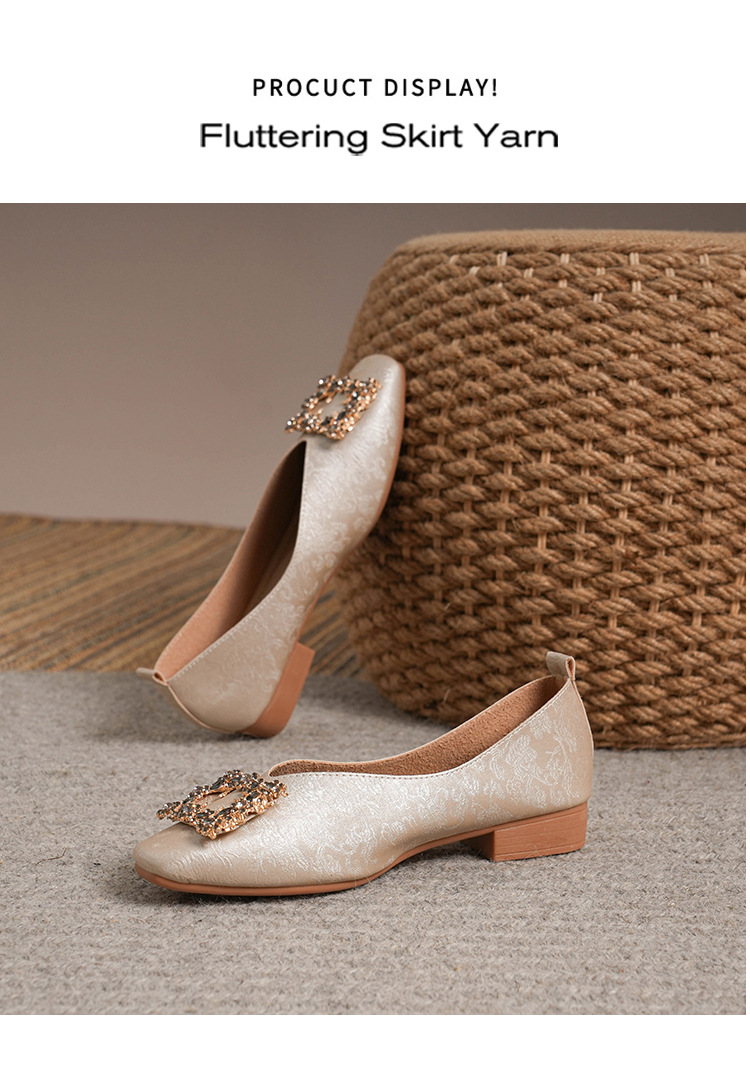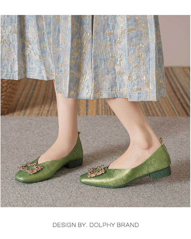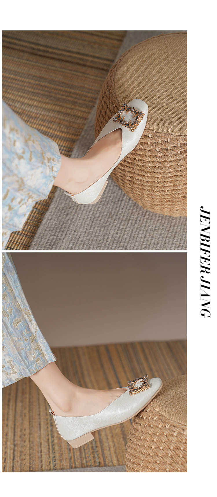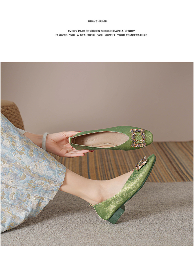 2023 새로운 프랑스 스타일 낮은 발 뒤꿈치 광장 발가락 얕은 입 싱글 신발 여성의 부드러운 바닥 플랫 신발 디자인 센스 틈새 봄과 가을 패션스토어 가기
