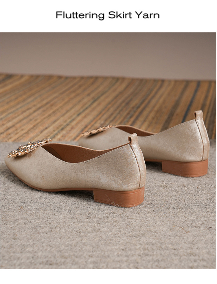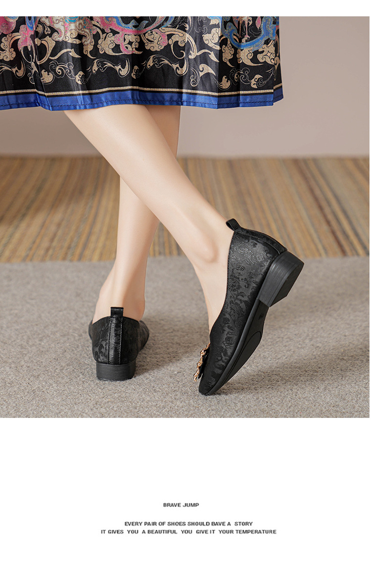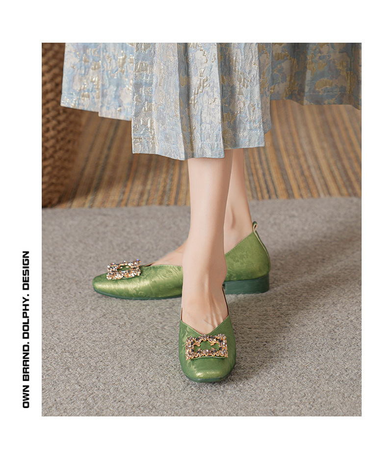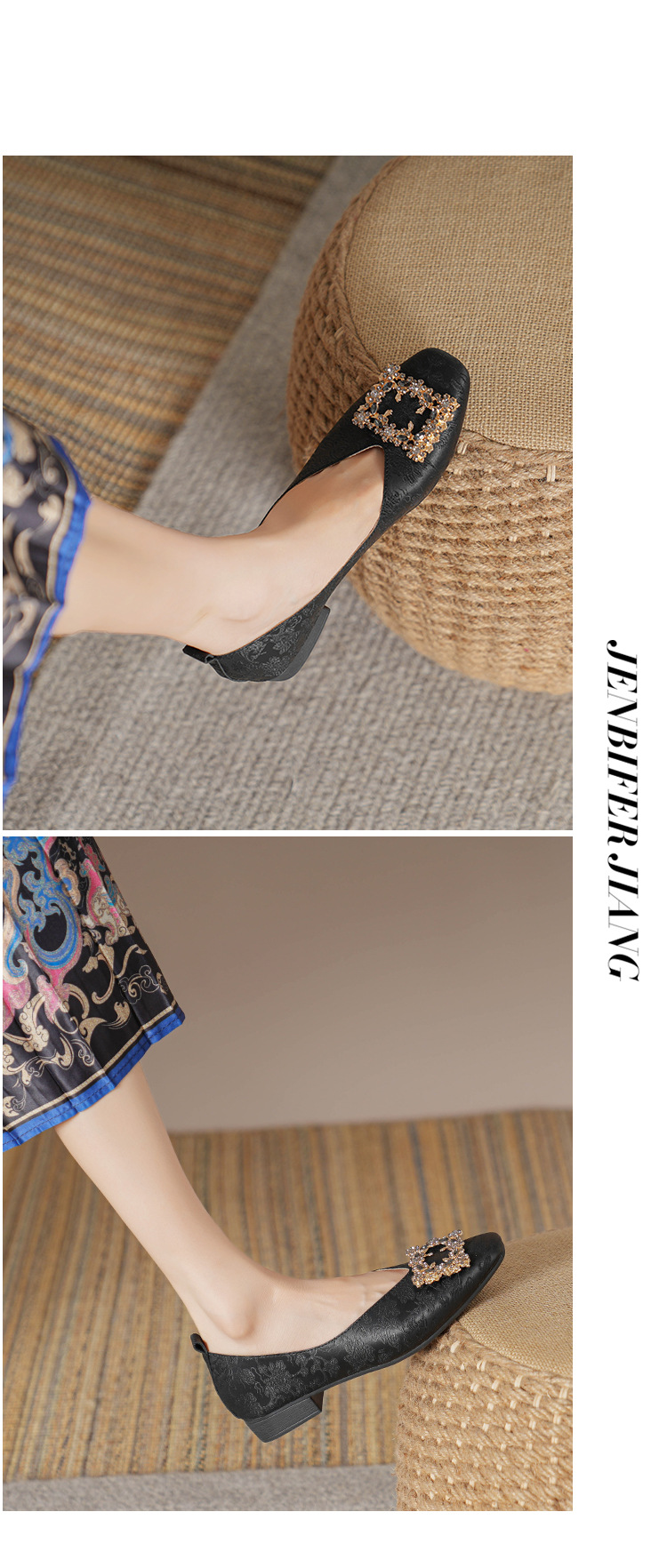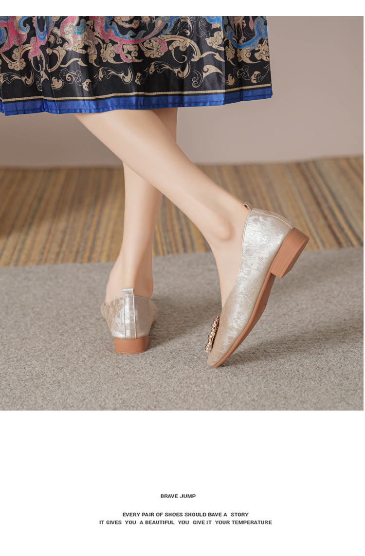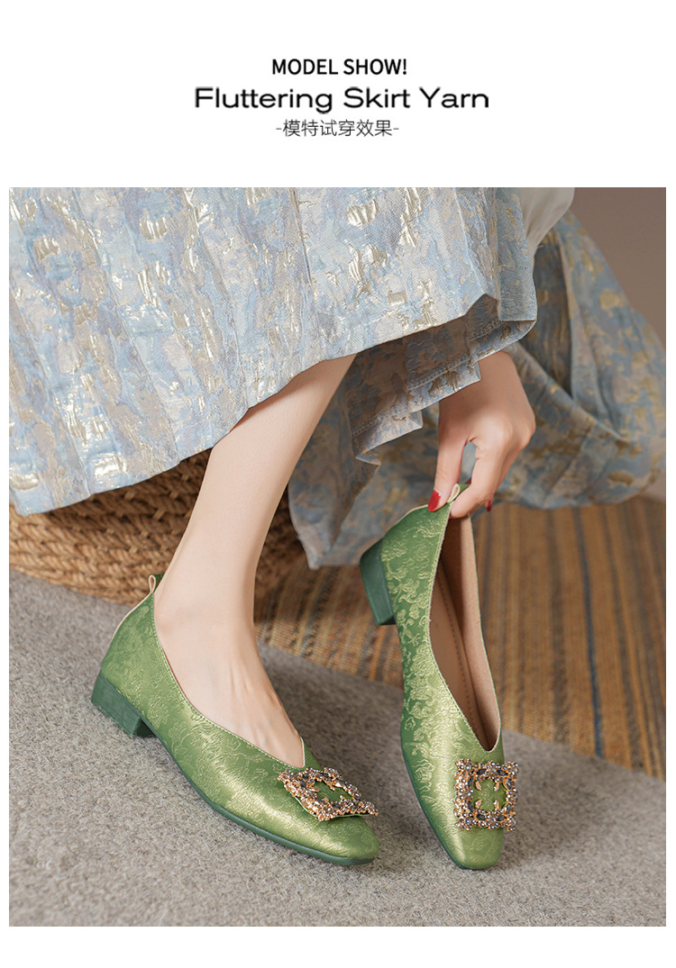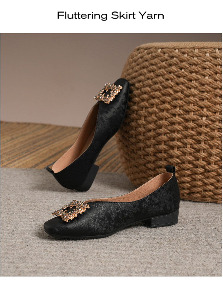 2023 새로운 프랑스 스타일 낮은 발 뒤꿈치 광장 발가락 얕은 입 싱글 신발 여성의 부드러운 바닥 플랫 신발 디자인 센스 틈새 봄과 가을 패션스토어 가기