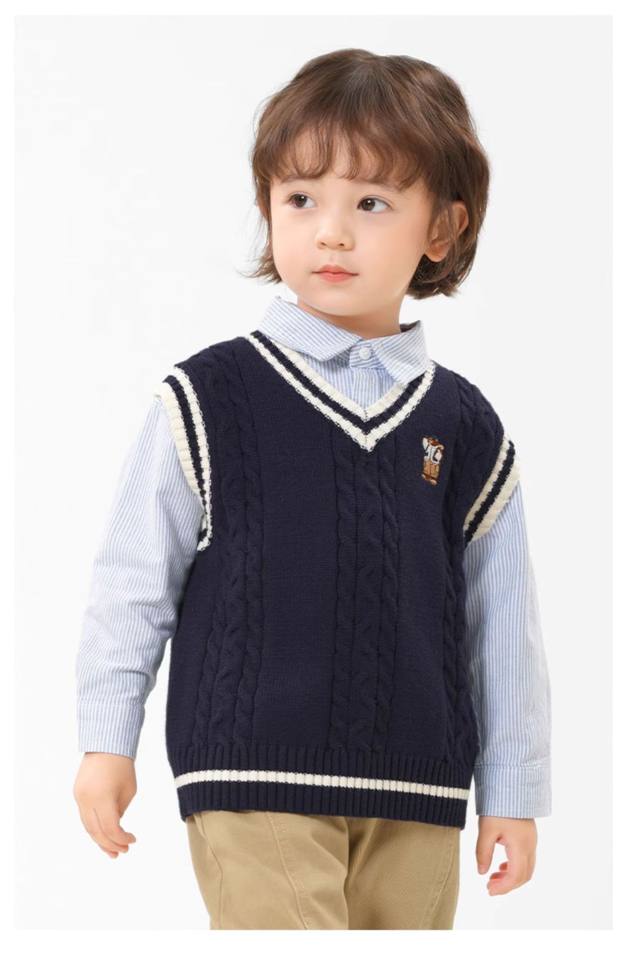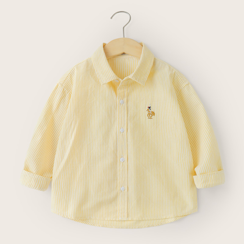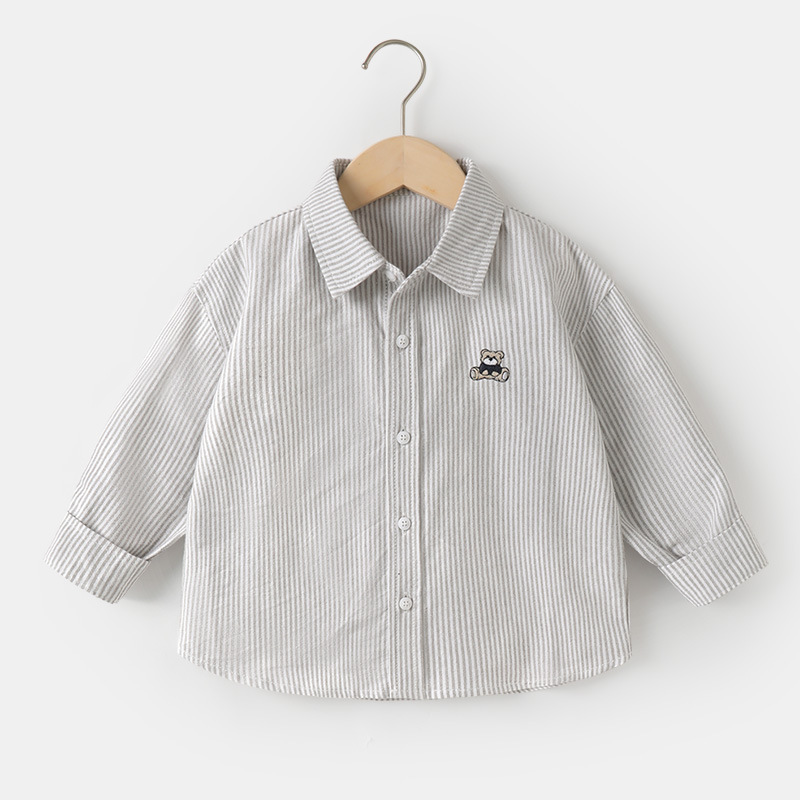 오른쪽 유럽 소년 셔츠 봄, 가을 아기 줄무늬 탑 2025 새로운 아기 봄 옷 아동 의류스토어 가기