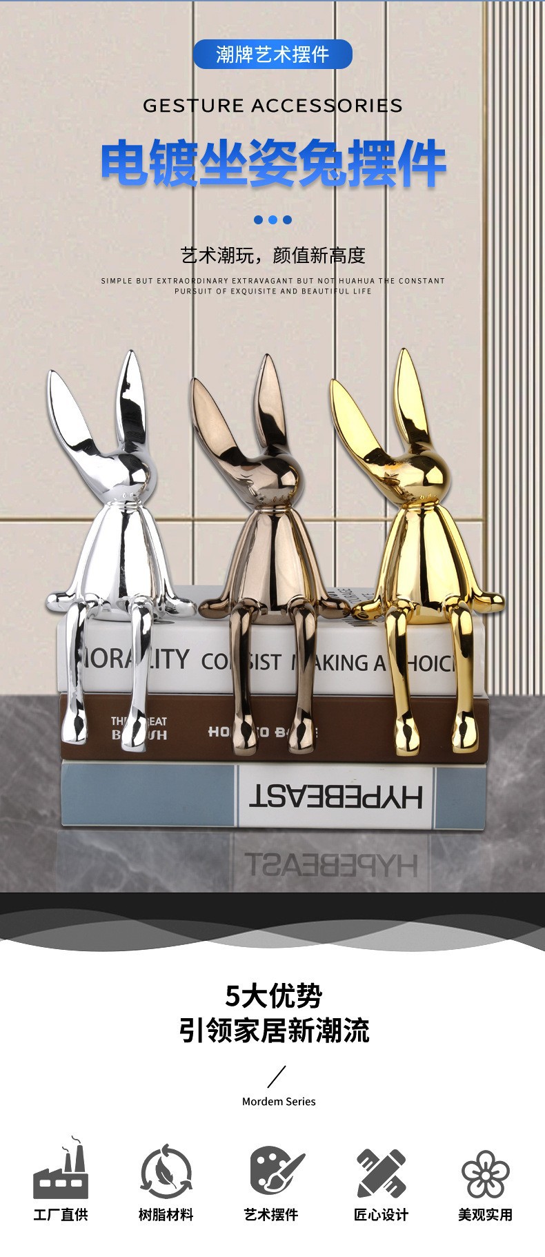 현대 빛 럭셔리 유행 거실 만화 앉아 토끼 TV 캐비닛 바탕 화면 장식 창조적 인 손 들고 긴 귀 토끼 장식