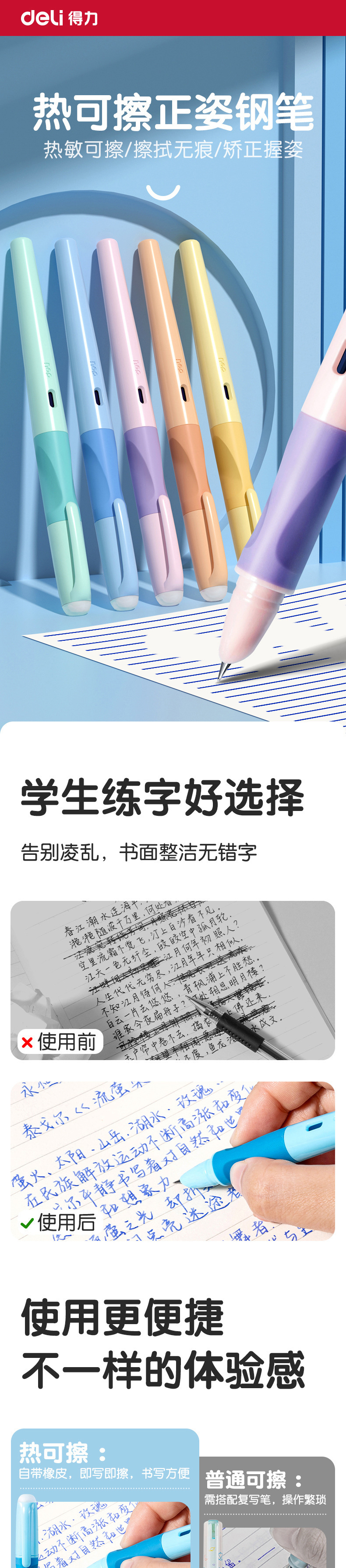 델리 SF541/542 열 지울 수 있는 펜 초등학생 3급 특수 연습용 펜 초보자 자세 교정용