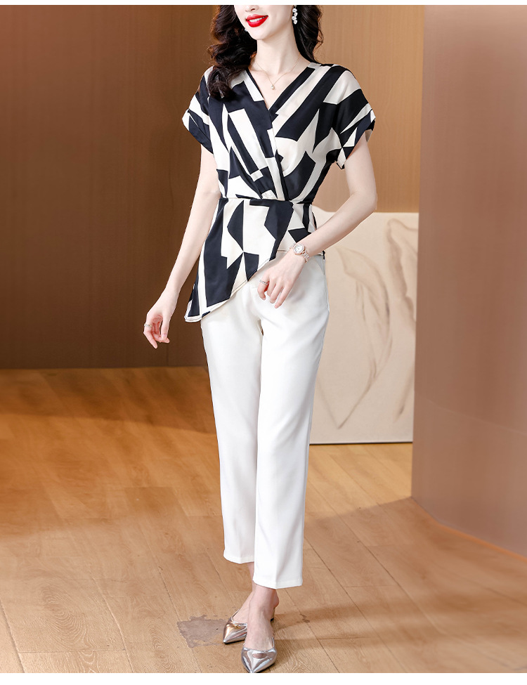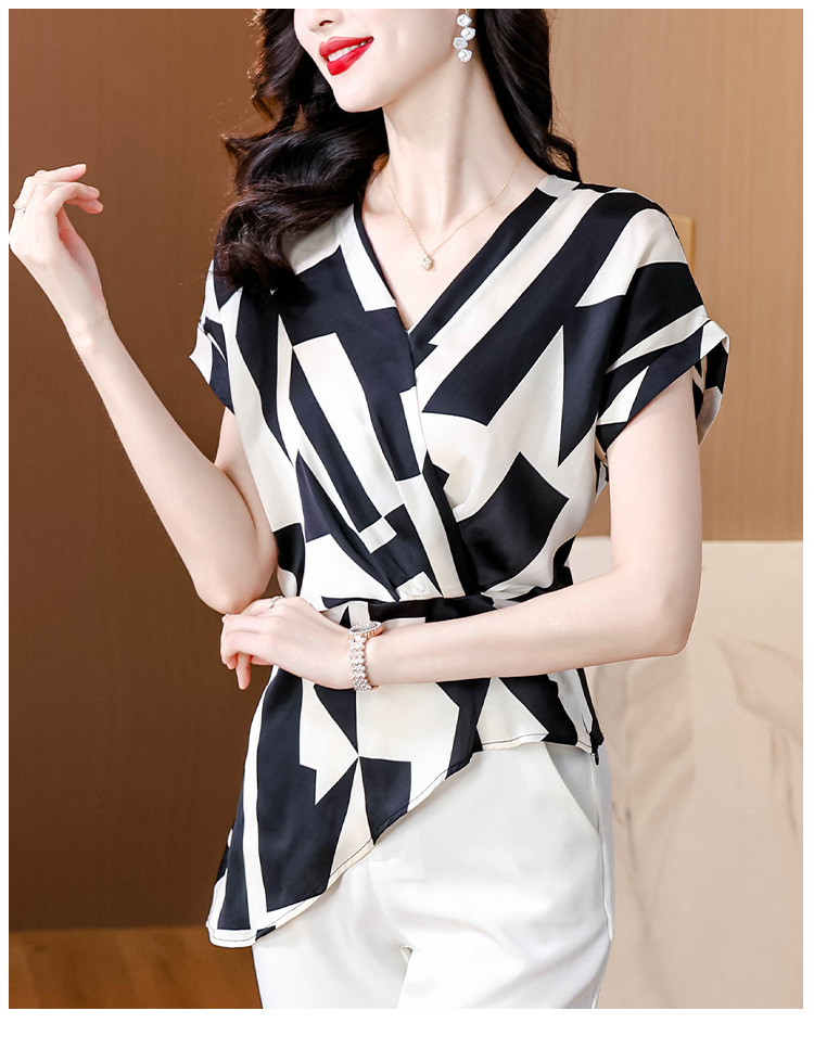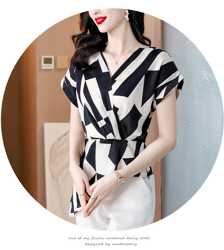 실제 사진 여름 새로운 프랑스 스타일 v 넥 허리 기질 반팔 탑 기질 컬러 매칭 탑 여성스토어 가기