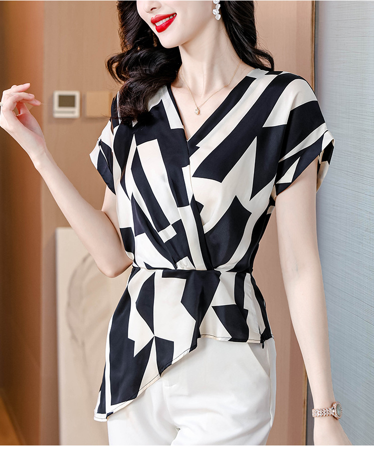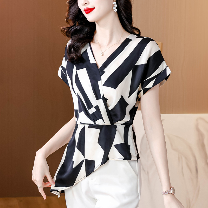 실제 사진 여름 새로운 프랑스 스타일 v 넥 허리 기질 반팔 탑 기질 컬러 매칭 탑 여성