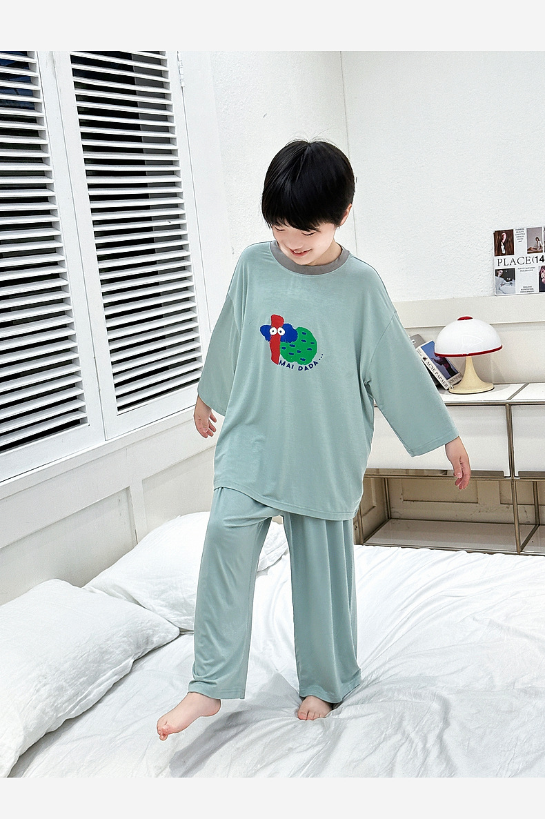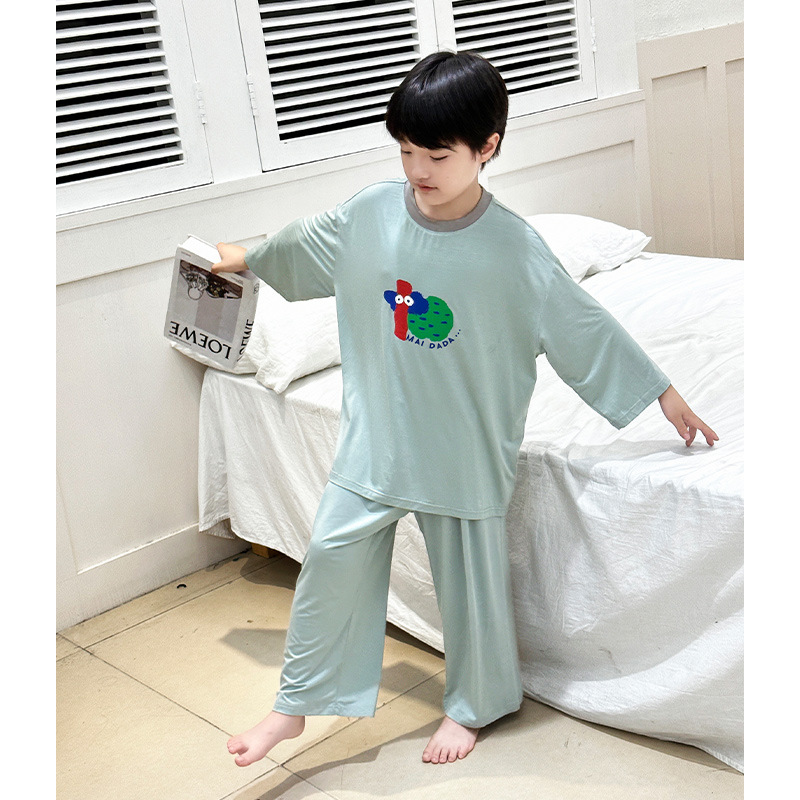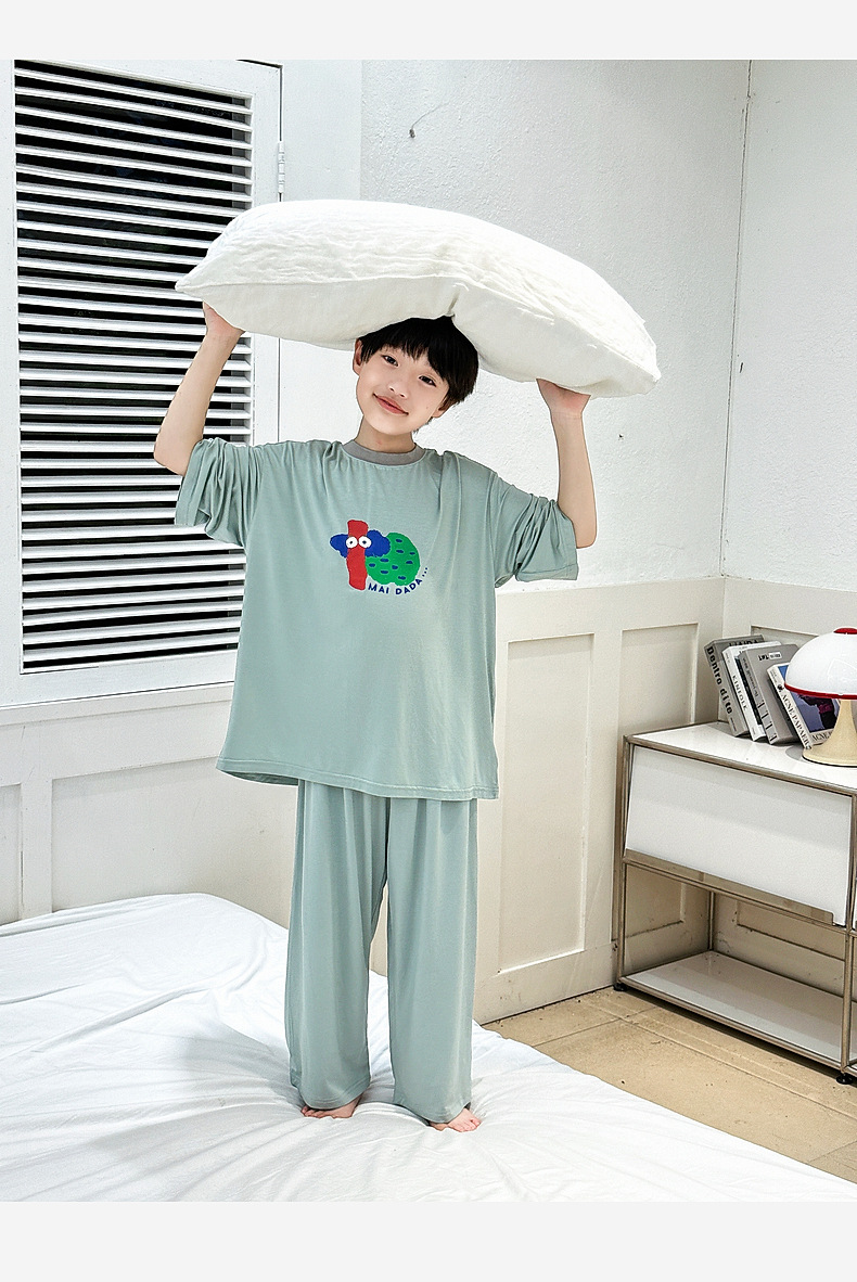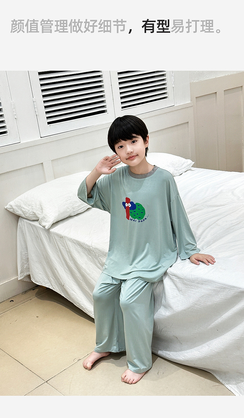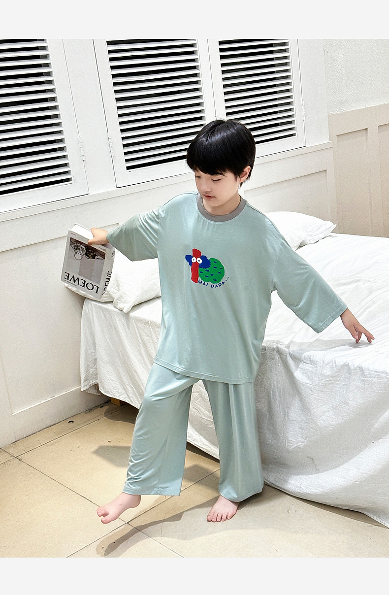 Huzhou Zhili 아동복 모달 어린이 파자마 여름 소년 홈 의류 여름 에어컨 의류 세트 다이파스토어 가기