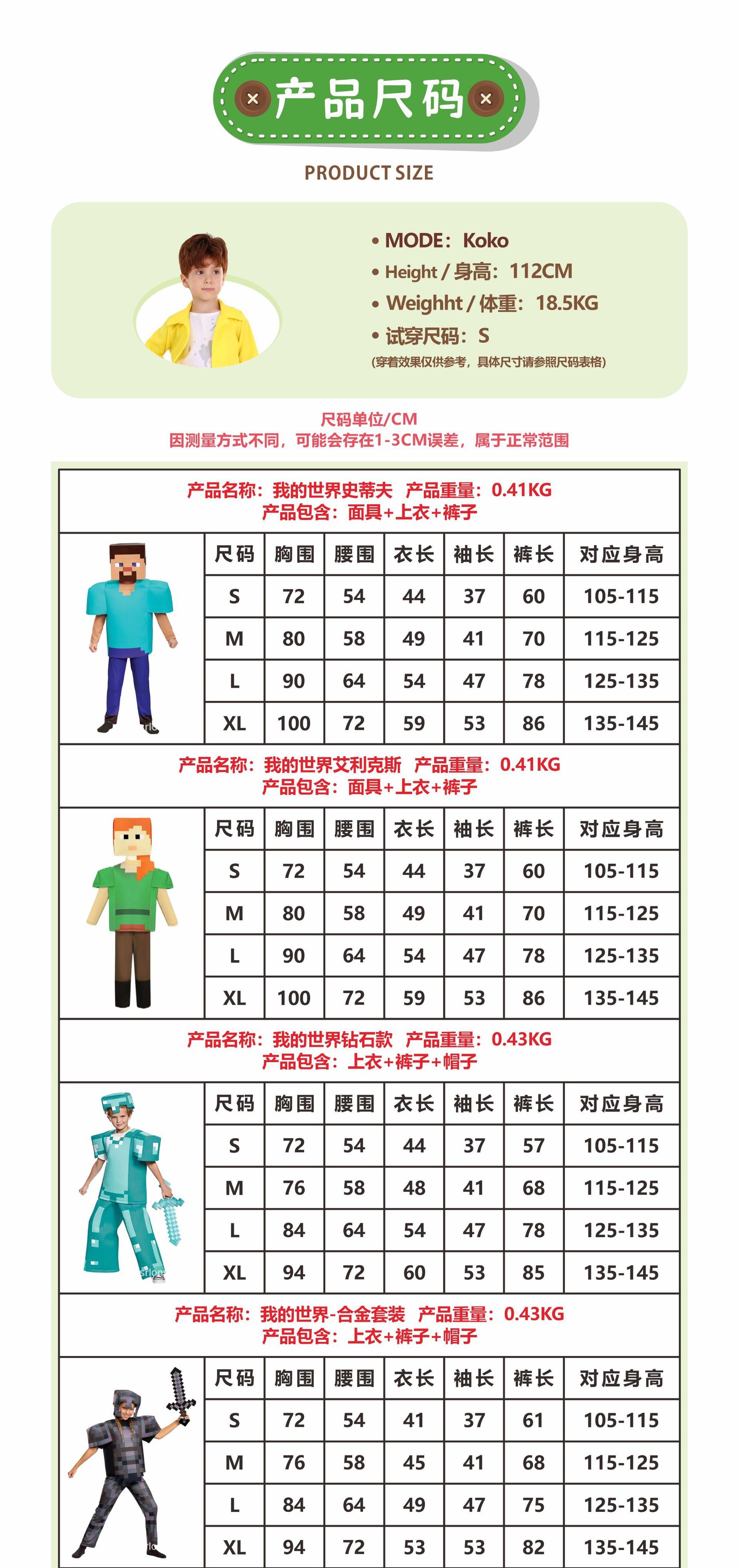 [기간한정 할인] 할로윈 어린이 2차원 애니메이션 코스 의상 마인크래프트 MC 퍼포먼스 의상스토어 가기