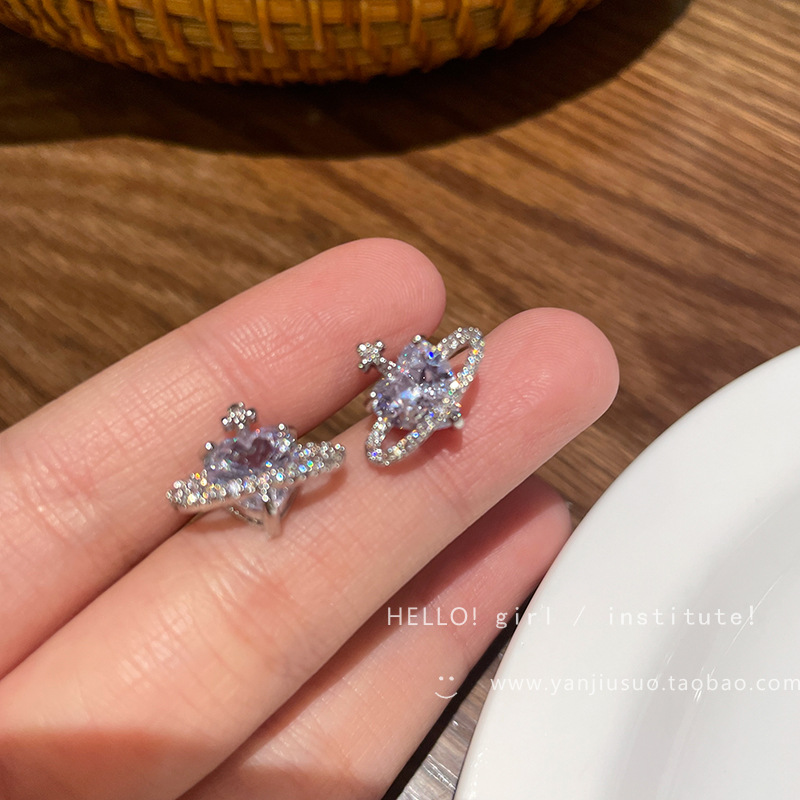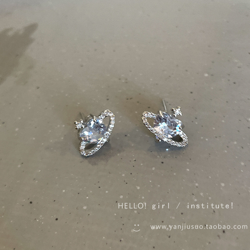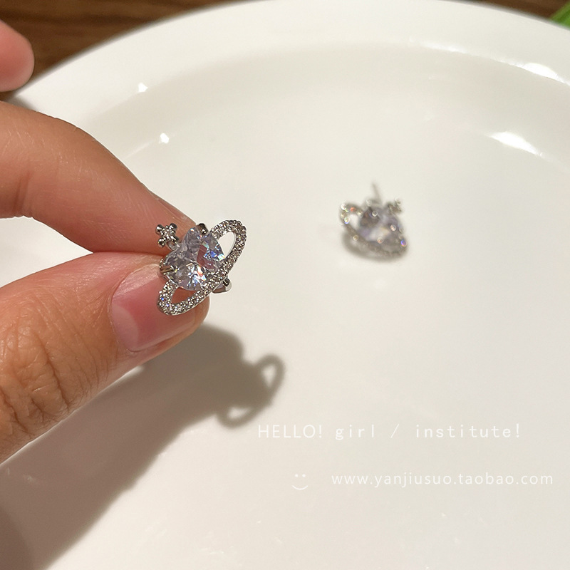 가벼운 사치스러운 사랑 심장 지르콘 귀걸이 여성의 2024 새로운 폭발 하이 엔드 감각 귀걸이 틈새 디자인 절묘한 행성 귀걸이