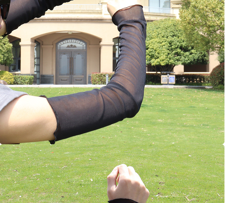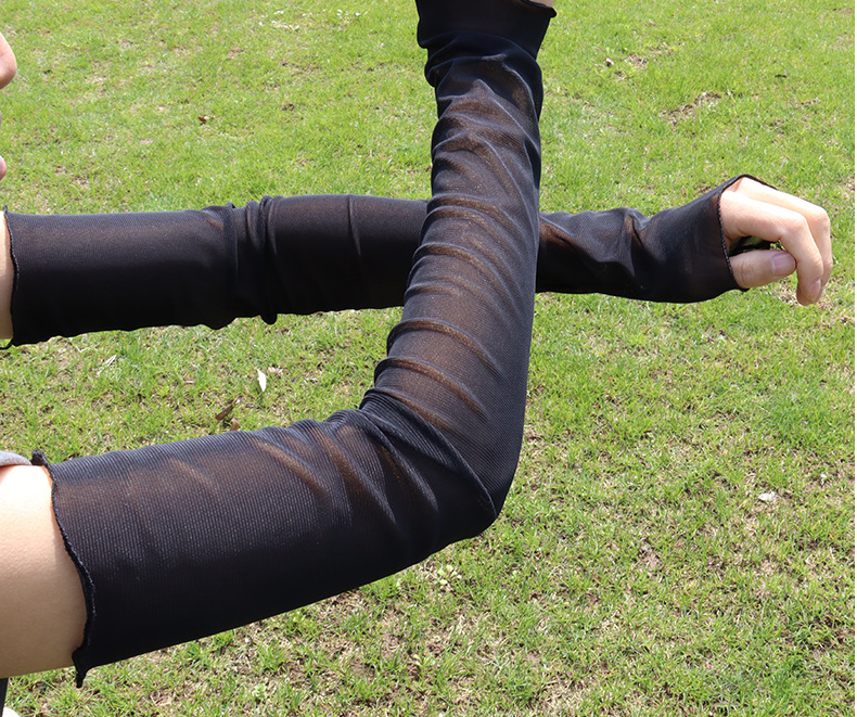 여름 새로운 선 스크린 장갑 여성의 반 손가락 얇은 메쉬 블랙 실크 꽉 스트레치 간단한 슬리밍 UV 보호 남성