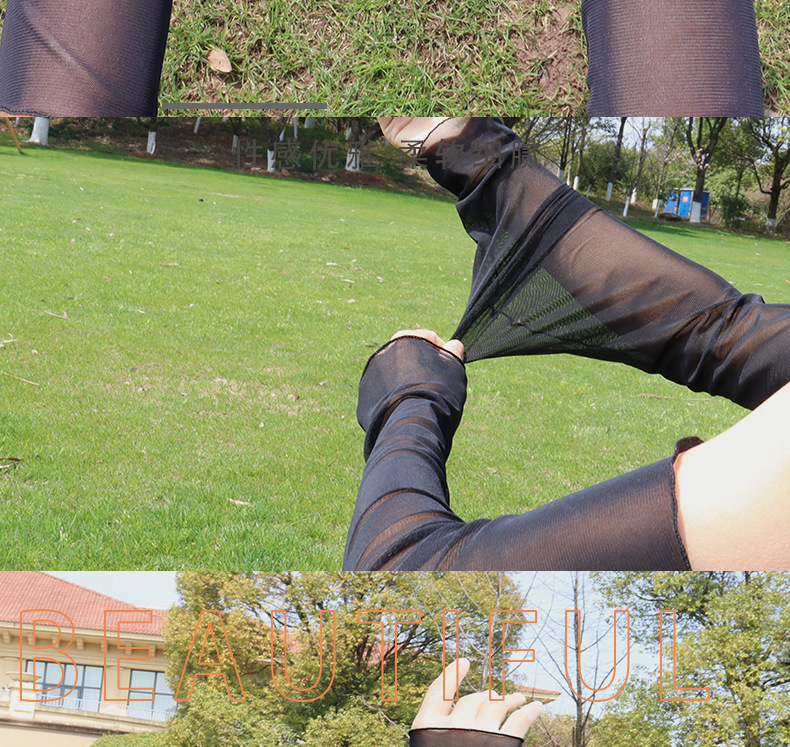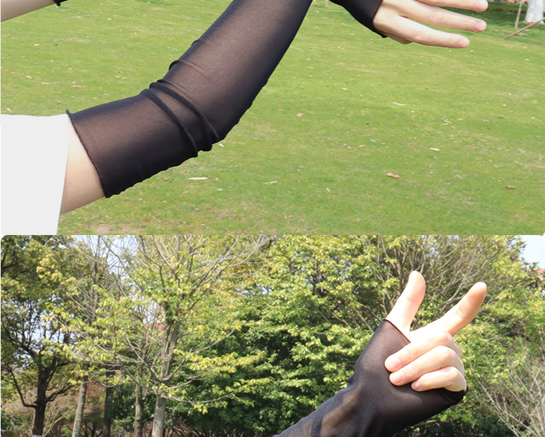 여름 새로운 선 스크린 장갑 여성의 반 손가락 얇은 메쉬 블랙 실크 꽉 스트레치 간단한 슬리밍 UV 보호 남성스토어 가기