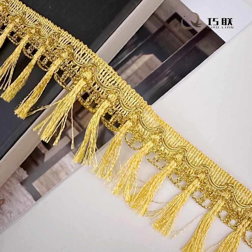 공장 재고 금과 실버 실크 술 레이스 골동품 식탁보 커튼 DIY 장식 액세서리