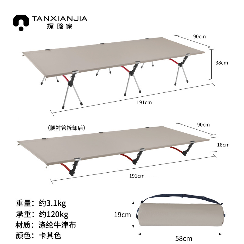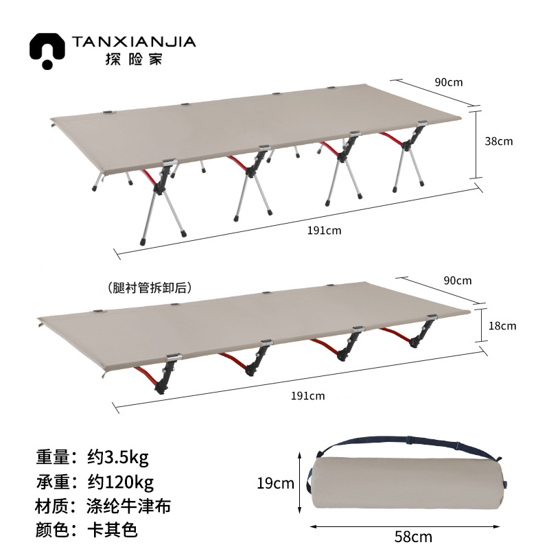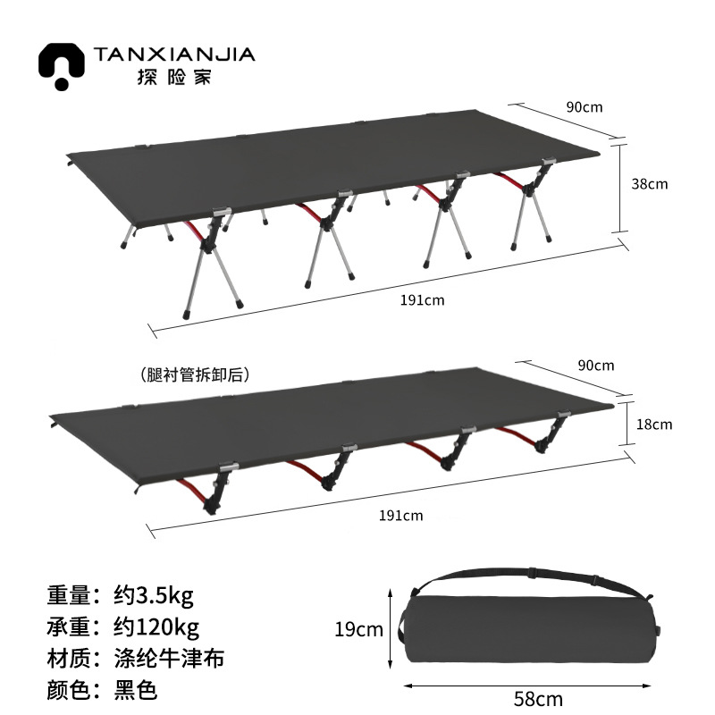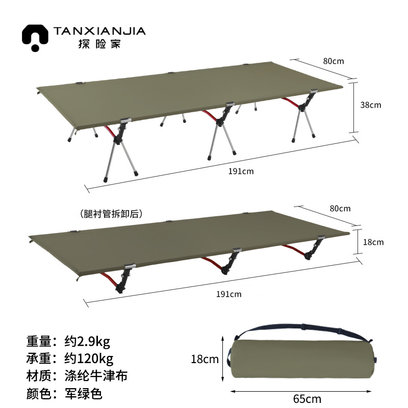 야외 캠핑 접이식 침대 초경량 알루미늄 합금 캠프 침대 점심 시간 셀프 드라이빙 투어를위한 휴대용 캠핑 텐트